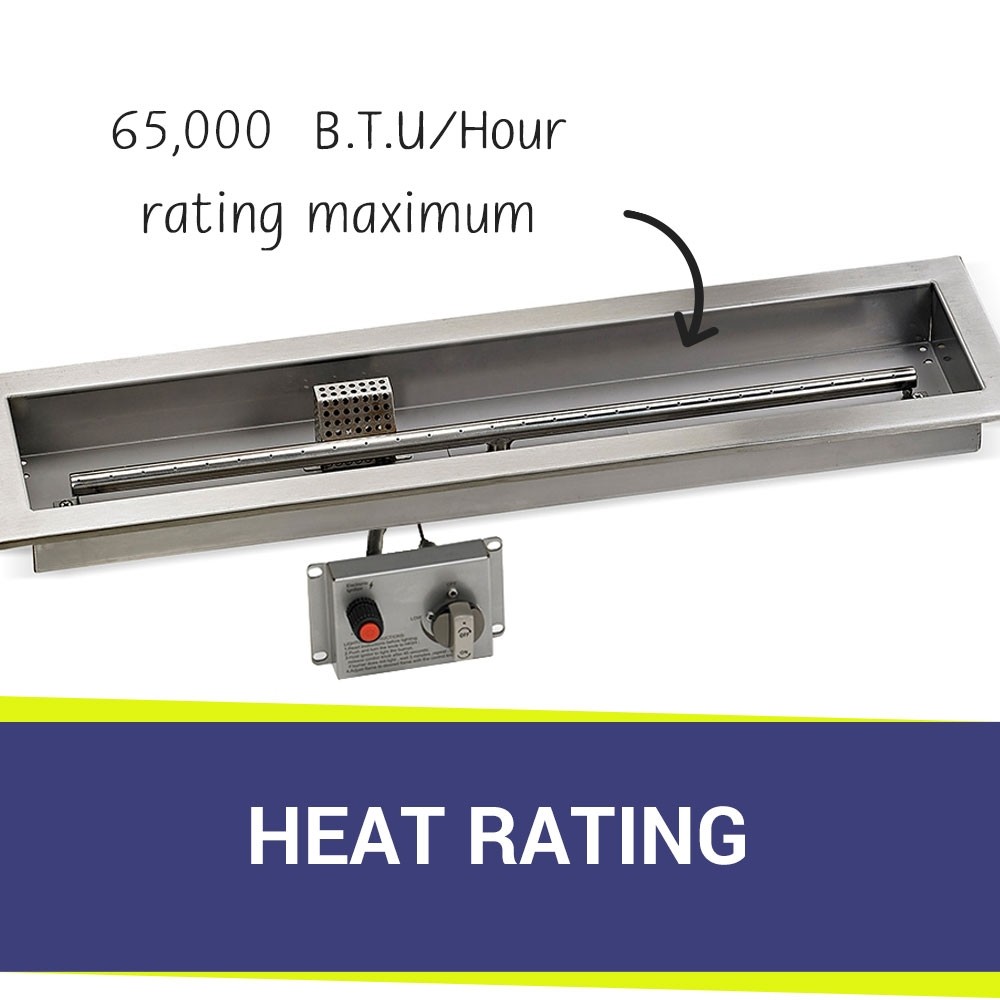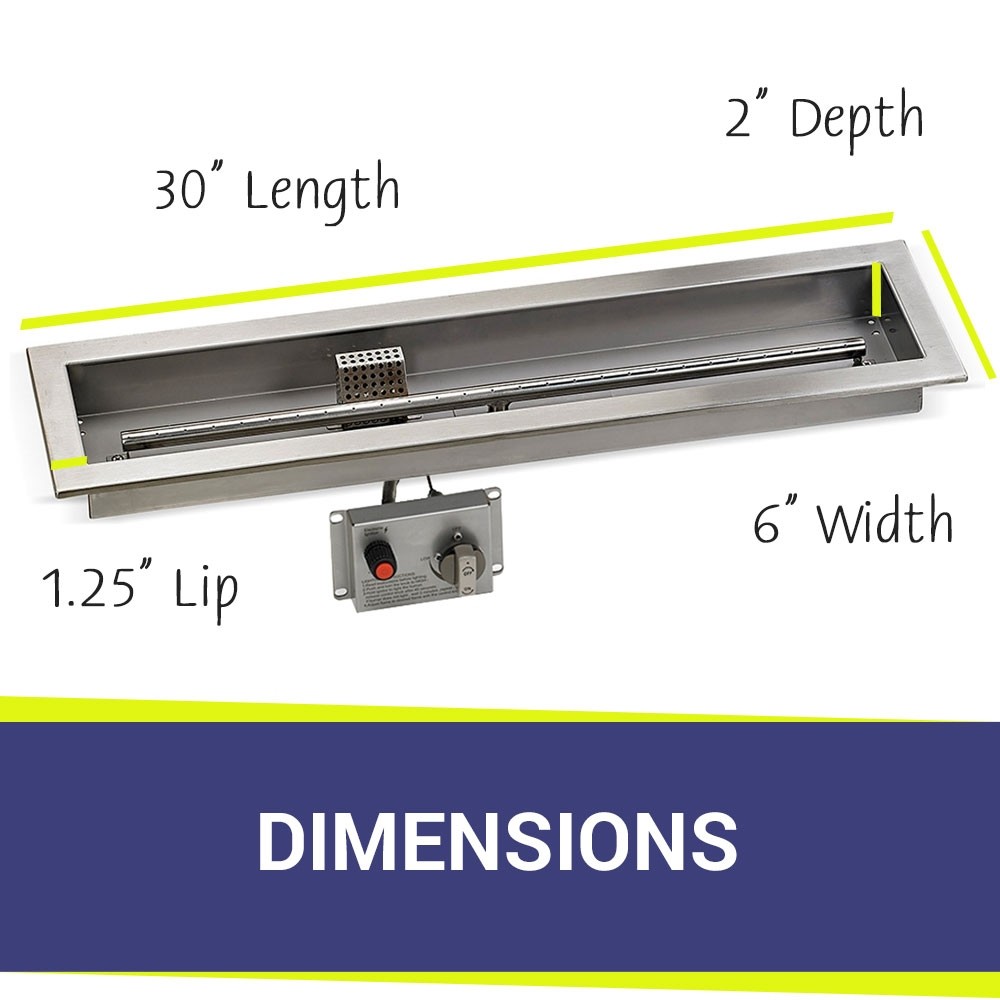 30″ x 6″ Stainless Steel Linear Drop-in Fire Pit Pan With Electric Ignition System kit, CSA Certified Specifications