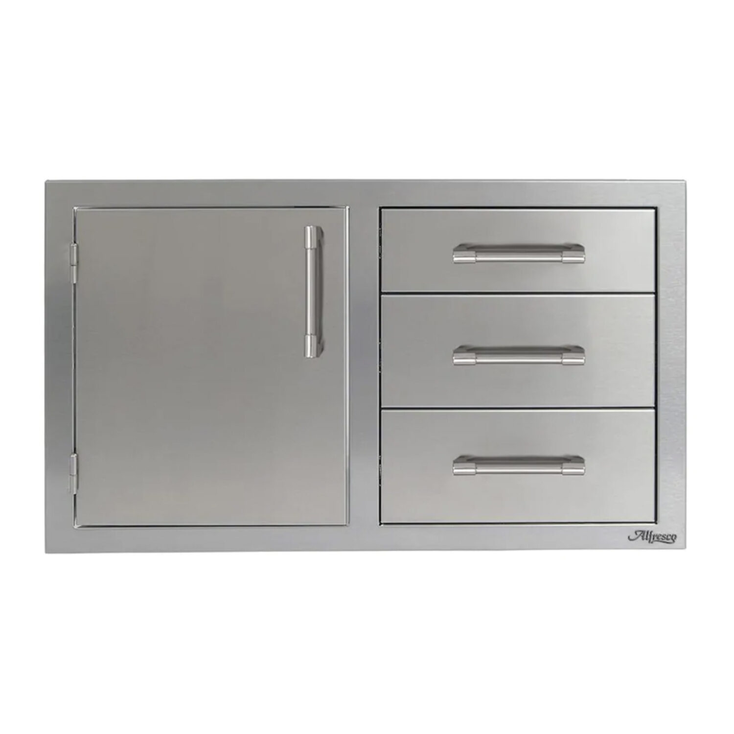 Alfresco 32-Inch Stainless Steel Left-Hinged Soft-Close Door & Triple Drawer Combo – AXE-DDC-L-SC