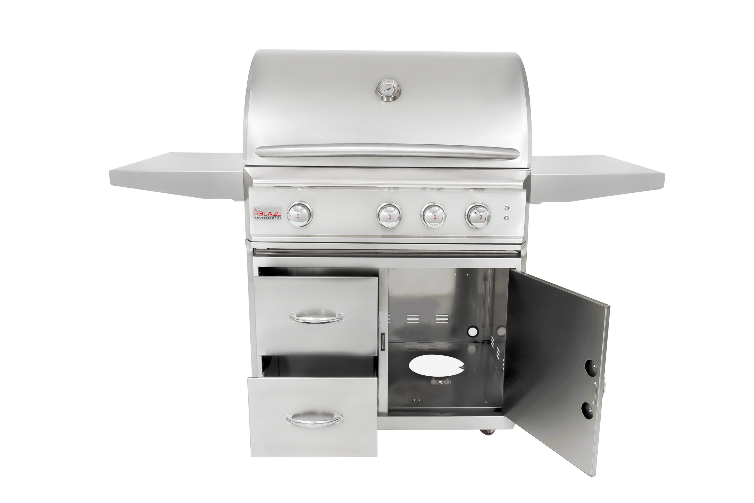 Blaze presents the Blaze Professional Grill as a leader in the industry regarding the thickness of its components resulting in irrefutable durability while providing an effective cooking system. By the precision mixing of fuel and oxygen, Blaze Professional achieves extraordinary searing temperatures while maintaining low gas consumption per burner when compared to the top performing grill brands. The Professional’s Illumination system compliments its unmistakable style giving an appearance to catch every admiring eye! The cart is warranted for lifetime to the original owner against defects in manufacturing and workmanship. This warranty extends to the original purchaser against manufacture defects for products purchased for ordinary single-family home use.