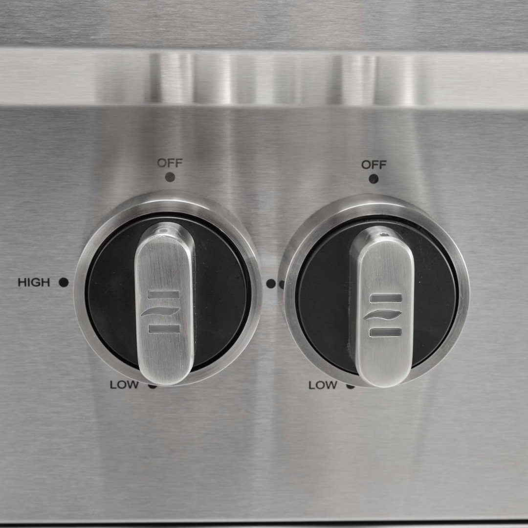 Dial back to a whisper-low flame for delicate tasks like melting chocolate, reducing wine sauces, or holding soups at serving temperature without scorching; inner and outer rings adjust independently for ultimate control.