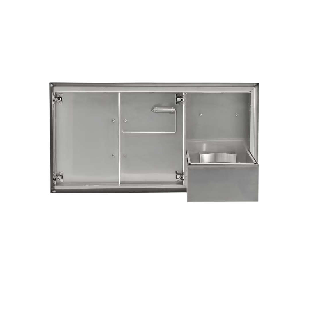 Keep your outdoor kitchen organized, spotless, and professionally finished with the Coyote 45-Inch Double Access Door & Pull-Out Trash Combo. Featuring soft-close hardware on both doors and the storage drawer—plus a dedicated roll-out bin for easy waste disposal—this all-in-one module brings restaurant-grade efficiency to your backyard workspace.