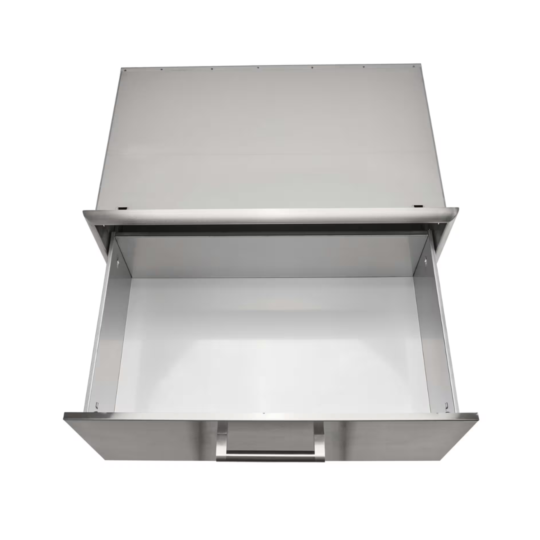 🛡️ Heavy‑Gauge 304 Stainless Construction – Fully welded walls and a 1‑piece faceplate resist rust, warping, and salt‑air corrosion, ensuring the drawer retains its shape and shine through years of high‑heat cookouts.