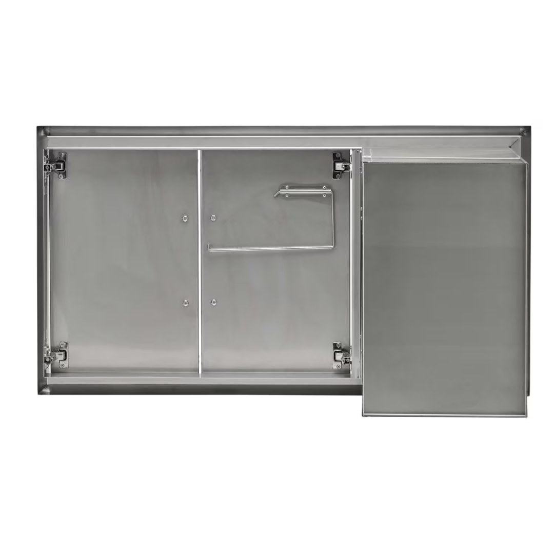Combine high‑capacity storage with effortless utility access in one sleek module. The Coyote 45 Inch Double Door & Drawer Combo houses twin soft‑close drawers, full‑swing access doors, and an integrated paper‑towel caddy—delivering quiet convenience, rugged durability, and a seamless built‑in finish for any high‑end outdoor kitchen.