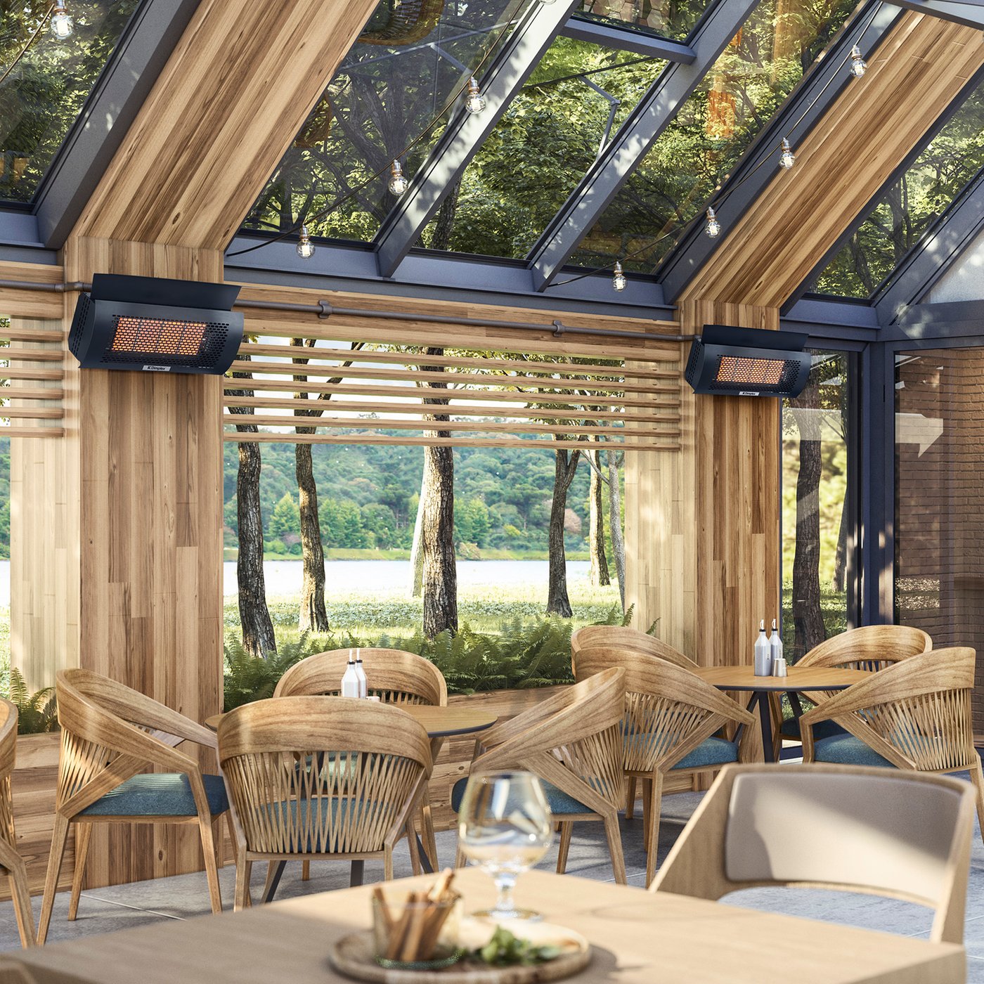 Outdoor patios are becoming more and more luxurious to homeowners and restaurant patrons. The Dimplex DGR series wall-mounted natural gas infrared heater is both durable and powerful – perfect for early spring and late summer. This heater will also save you space with wall or ceiling mounting available, allowing you freedom in furniture placement and design. All you need to do is extend your natural gas line in order to extend your patio season.