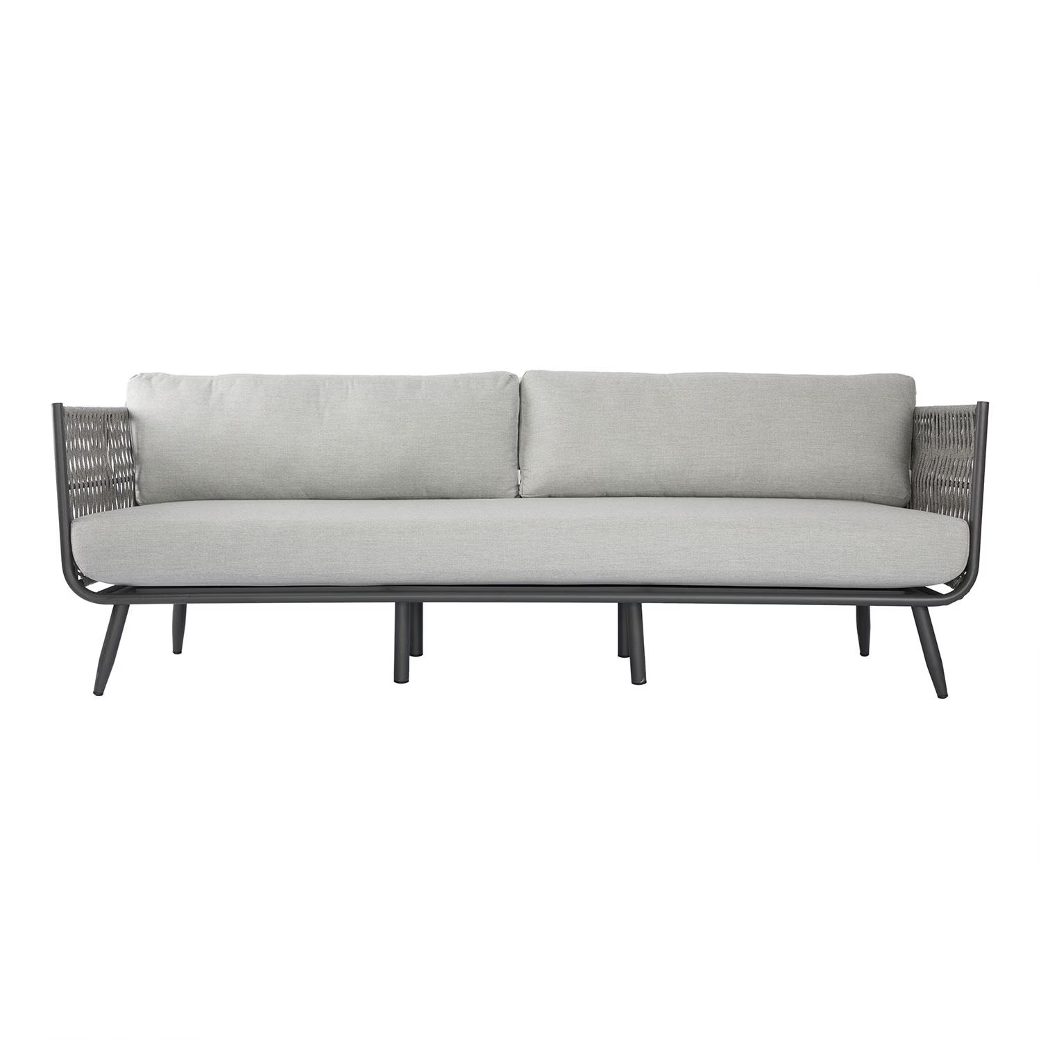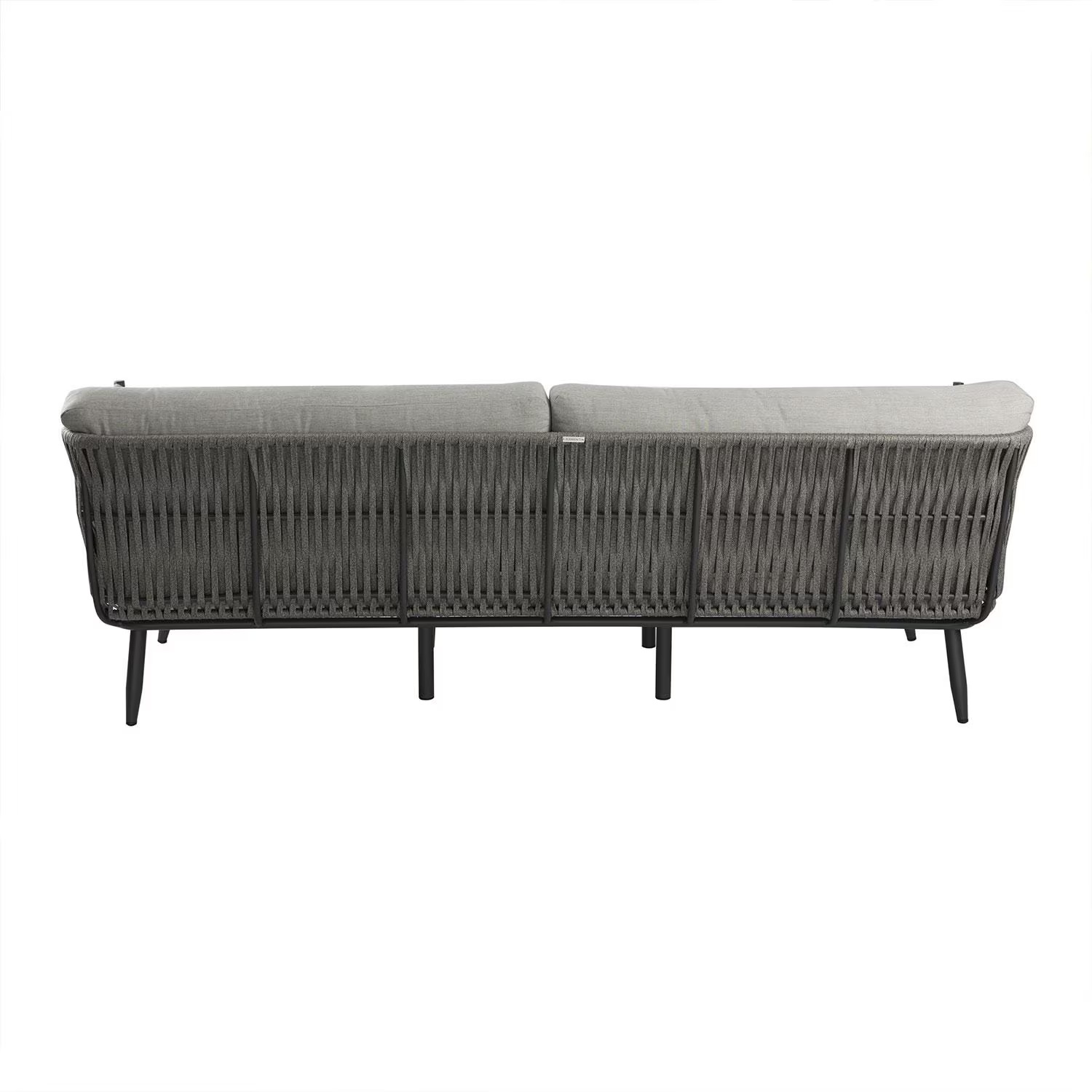 Bring architectural elegance and lasting comfort to your outdoor living space with the Elementi Milano Outdoor Aluminum 3 Person Sofa. Inspired by the sleek design of Milan’s modern outdoor retreats, this luxurious outdoor sofa blends minimalist styling with commercial-grade durability to create a centerpiece that’s both beautiful and built to withstand the elements. Featuring a fully welded, rust-resistant aluminum frame with a dark powder-coated finish, rope-wrapped armrests for subtle texture, and deep, supportive cushions upholstered in premium Sunbrella® performance fabric, the Milano Sofa offers inviting comfort and refined design for patios, poolside lounges, outdoor kitchens, and backyard living areas.
