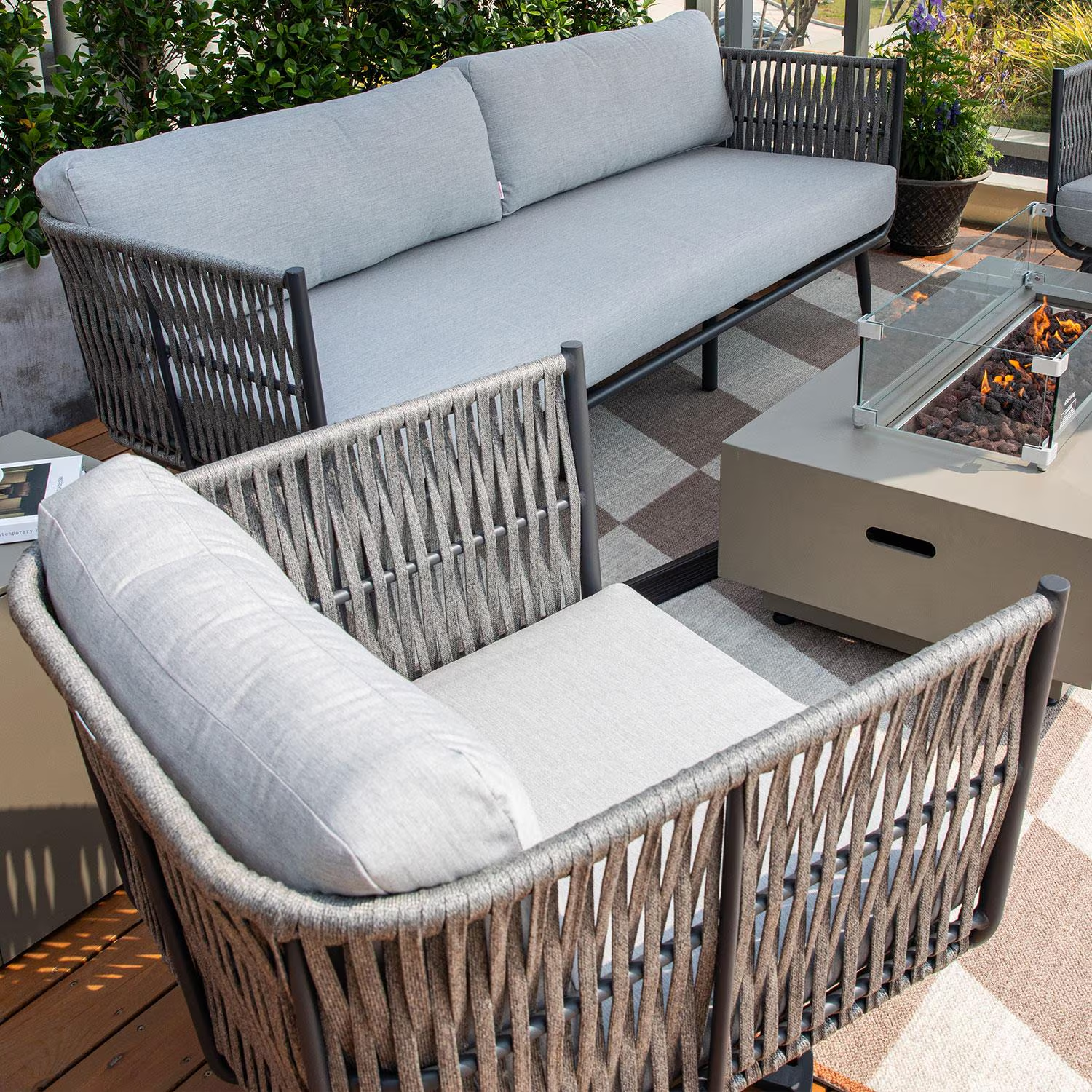 Stylish rope detailing adds texture and visual interest while softening the chair’s contemporary silhouette.
