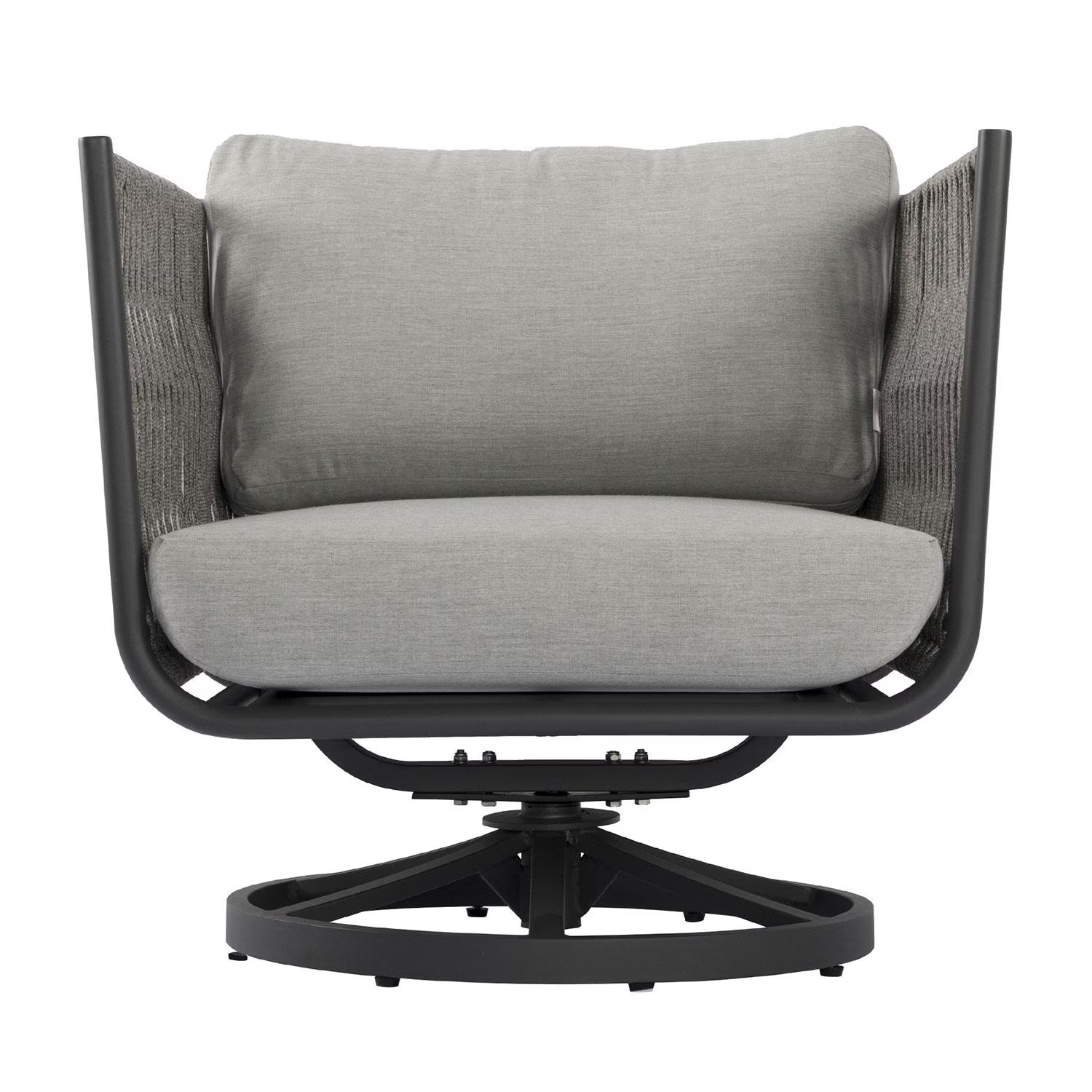 Add movement, comfort, and modern style to your outdoor living space with the Elementi Milano Outdoor Aluminum Swivel Club Chair. Designed for contemporary patios and upscale outdoor lounges, this chair combines a smooth 360-degree swivel base with clean architectural lines and durable, all-weather materials. A fully welded, powder-coated aluminum frame is paired with elegant rope-wrapped armrests and plush Sunbrella® cushions to create a refined seating option that’s as functional as it is stylish.