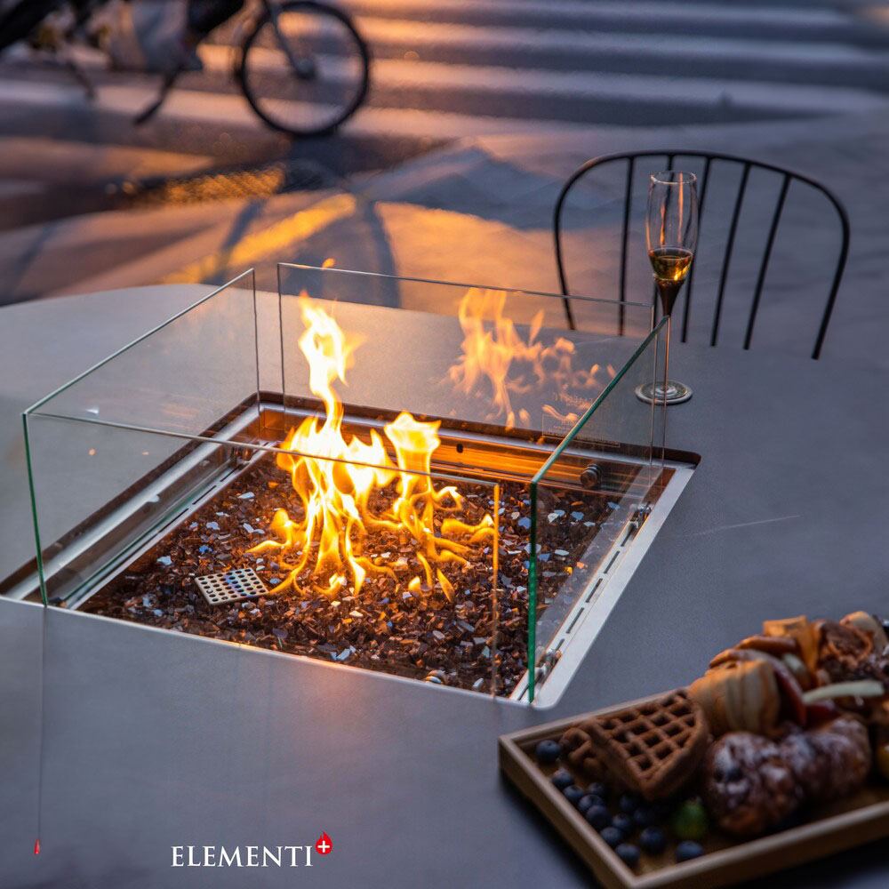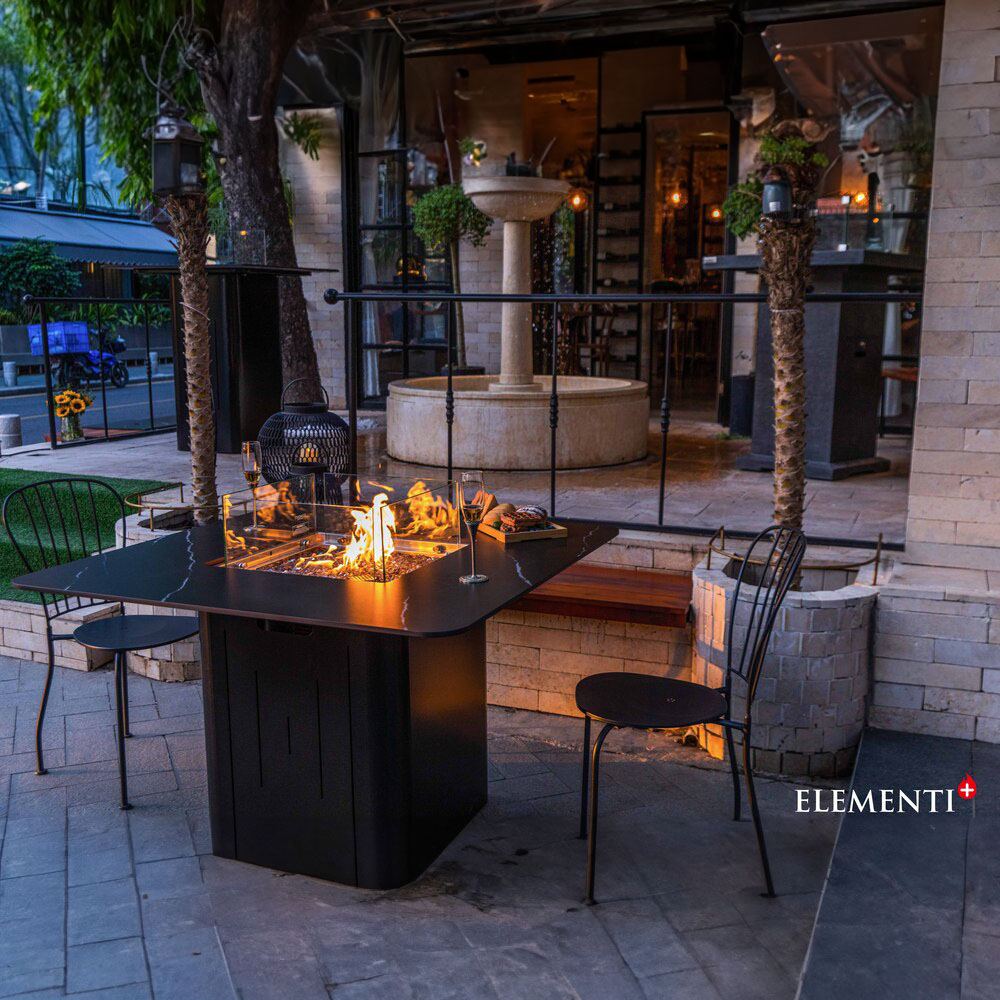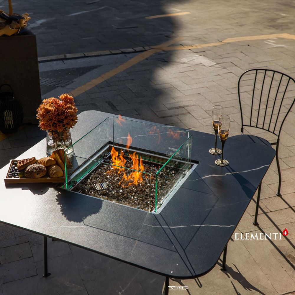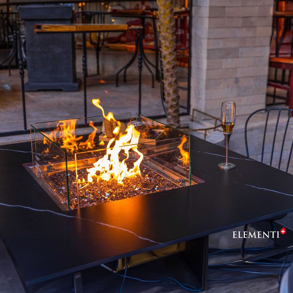 Elevate your dining experience with the Elementi Plus Brugge Fire Dining Table, a perfect fusion of innovation and luxury. This 46.5-inch square masterpiece is designed to bring warmth and sophistication to patios, gardens, or poolside settings, delivering an impressive 60,000 BTUs of heat and creating a captivating ambiance for unforgettable dining moments under the stars.