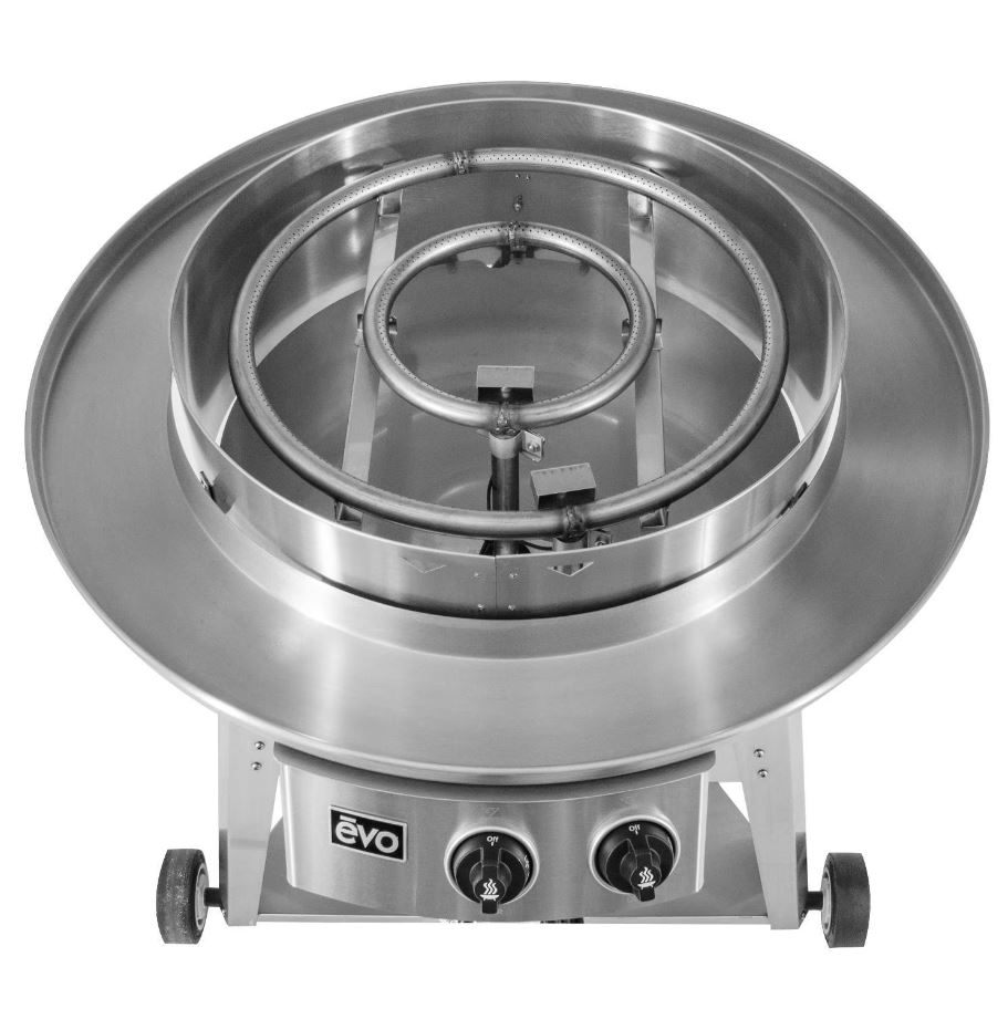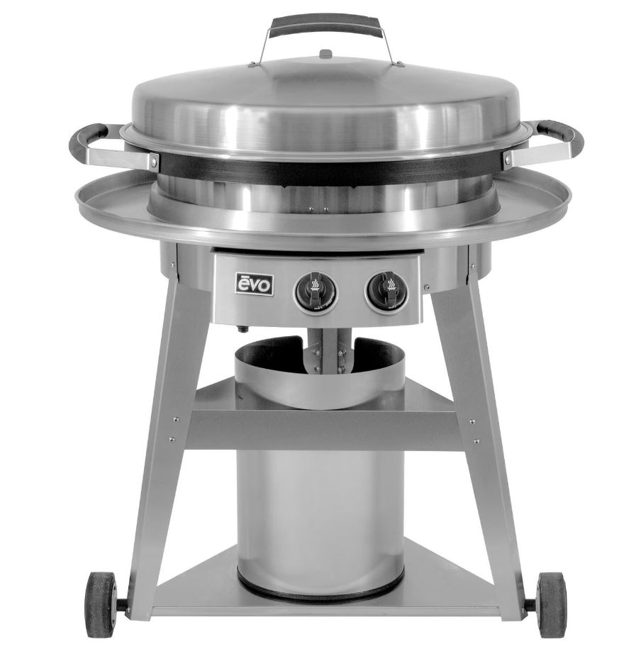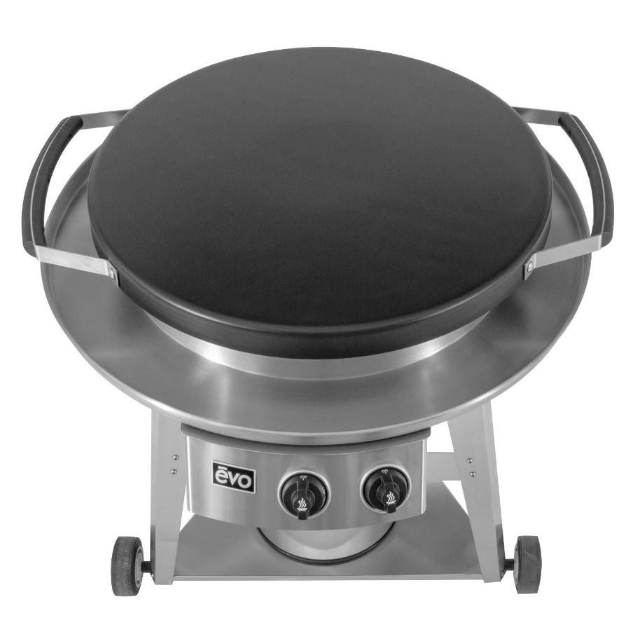 Crafted in the USA with commercial-grade stainless steel, this Evo grill is built for durability and long-lasting performance. The solid 3/16-inch oil-seasoned non-stick steel cooking surface is 30 inches in diameter, providing 650 sq. inches of cooking space. With an enclosed dual-burner system that produces a total of 40,095 BTUs and offers a temperature range of 225 to 700 degrees, you can achieve precise heat control from the center to the edge.
