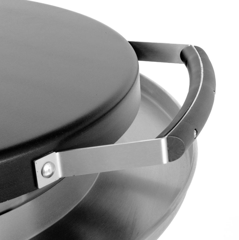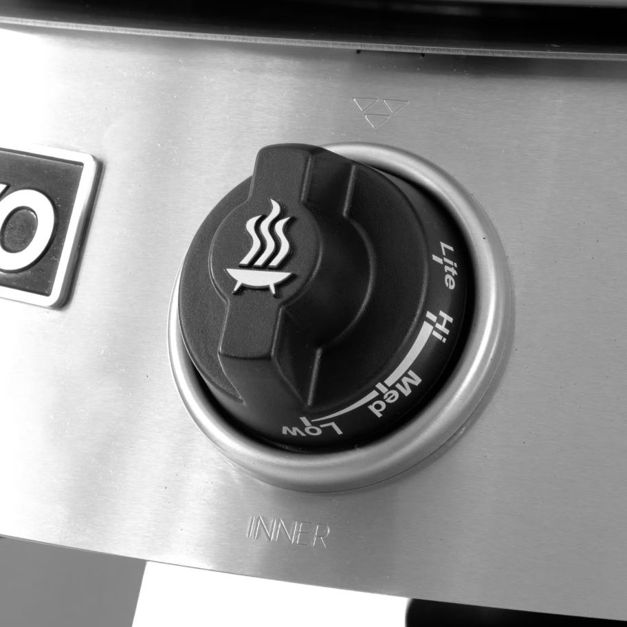 - Stainless steel hood turns grill into a patio oven for roasting, steaming, and smoking