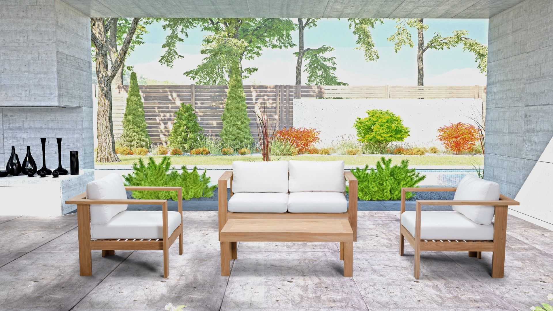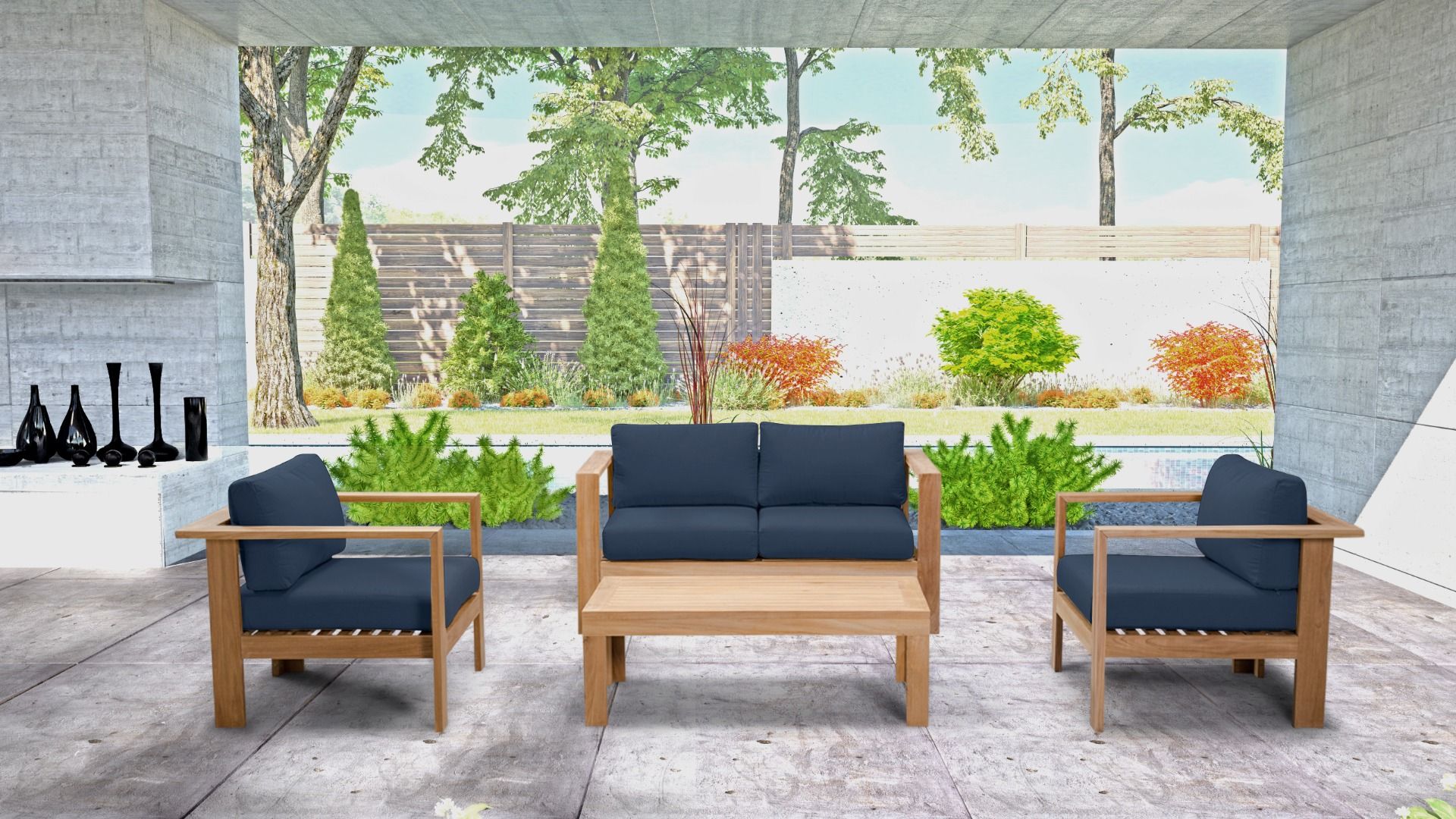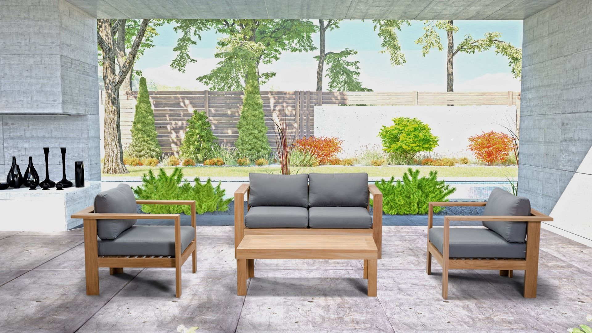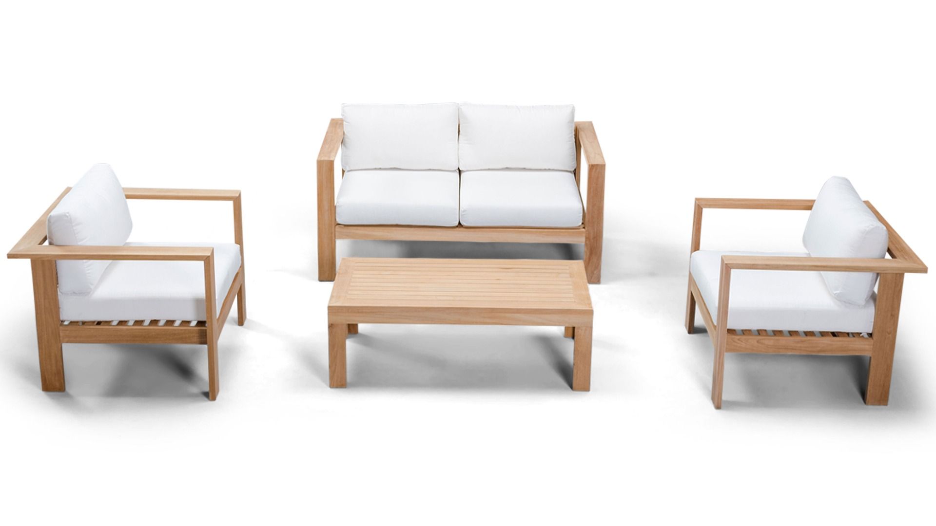 The 4 Piece Ando Loveseat Set by Harmonia Living will bring stylish comfort and relaxation to your favorite outdoor setting. Crafted from sustainably harvested teak, this line of outdoor furniture will perform well in any climate, rain or shine. The simple, modern elegance of its boxed arms and its gently aged appearance will create a warm, natural feel in any outdoor setting. All-weather, fade resistant cushions provide even more comfort and are designed to endure the elements. All cushions are made in the USA from Sunbrella performance fabrics which carry a 5 year fade warranty.