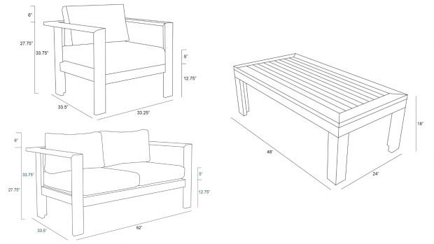 - Ando Loveseat: 62L x 33.5W x 33.75H (54 lbs.)