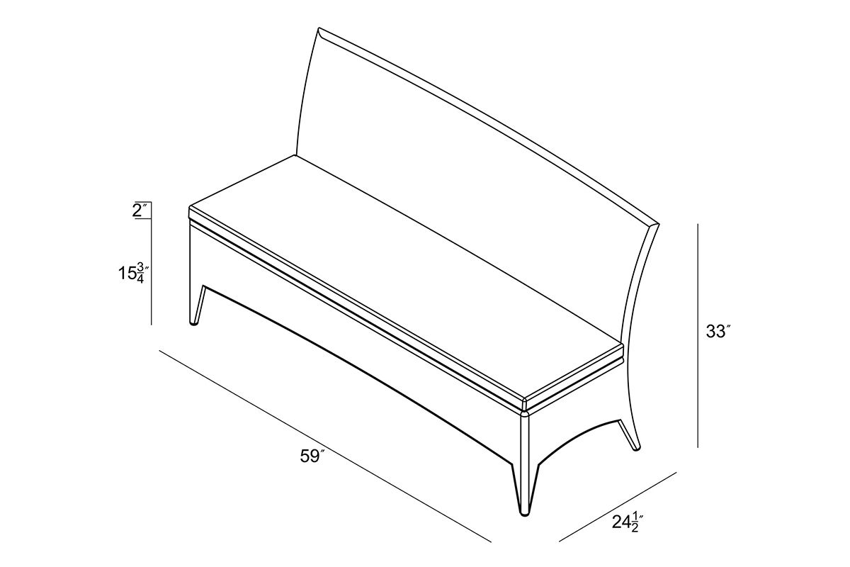 - Dining Bench: 59″W x 24.5″D x 33″H (25lbs.)