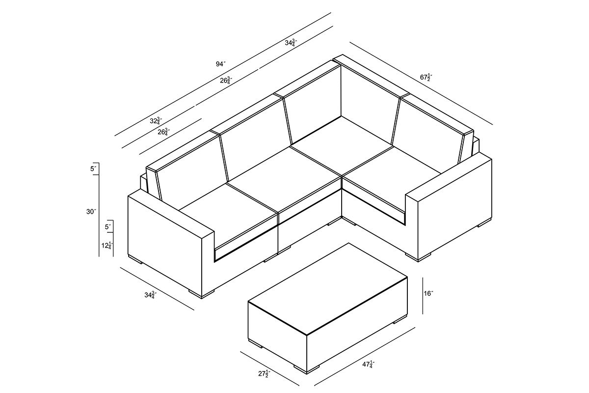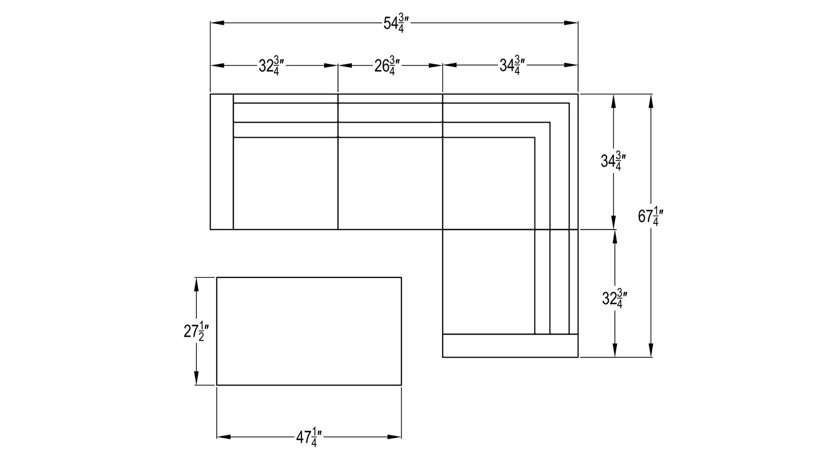 - Left Arm Section: 32.75″W x 34.75″D x 32″H (33lbs.)