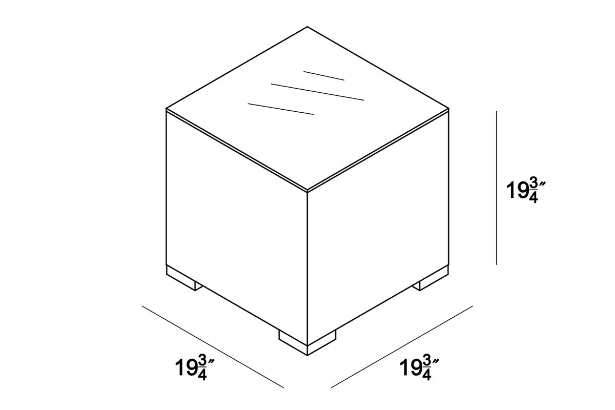 - End Table: 19.75″W x 19.75″D x 19.75″H (23lbs.)