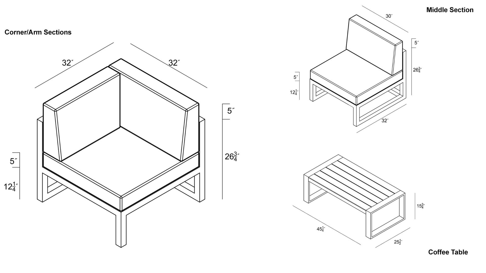 - Corner Section: 32″W x 32″D x 33″H (37lbs.)
