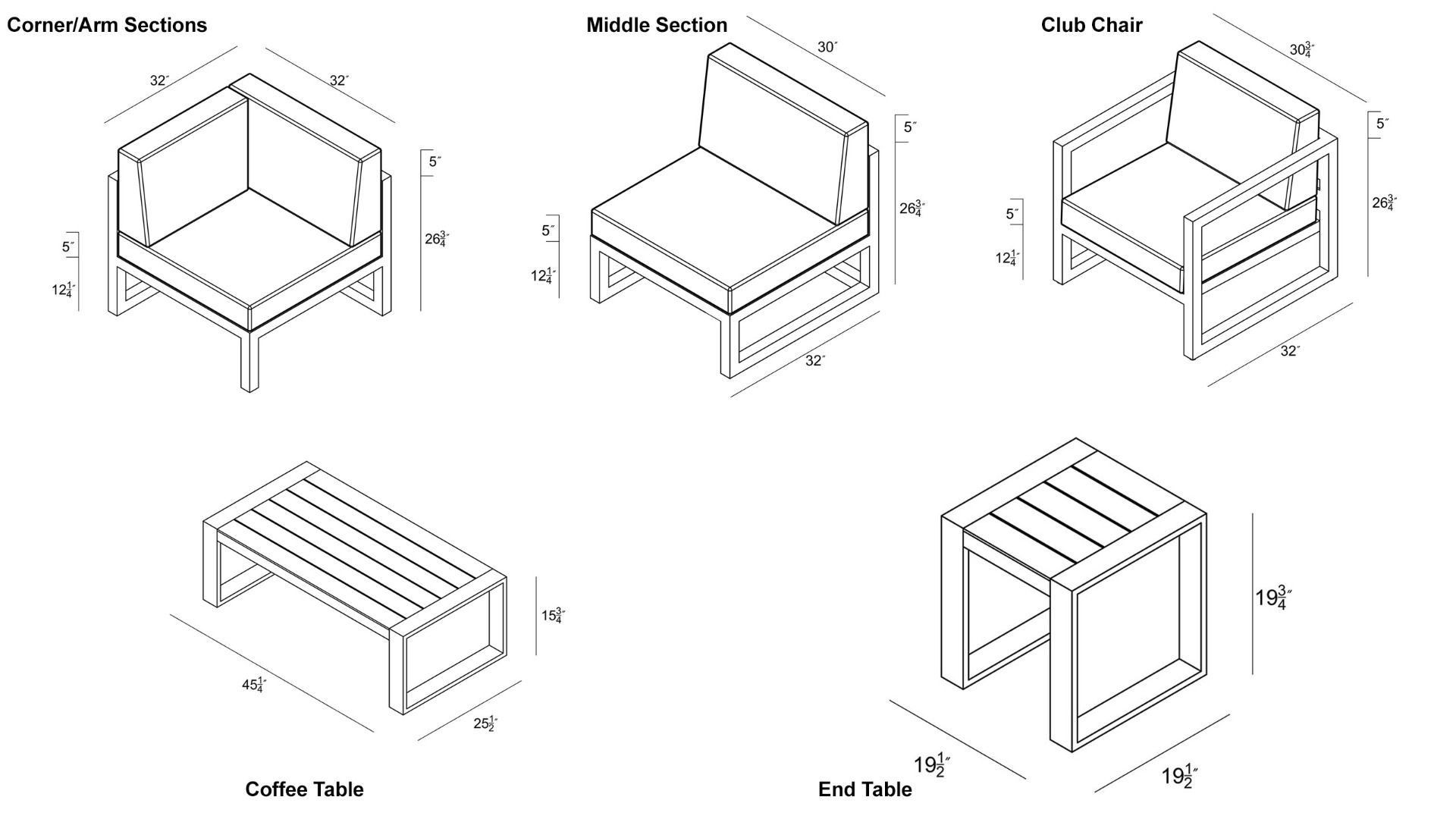 - Right Arm Section: 32″W x 32″D x 33″H (35lbs.)