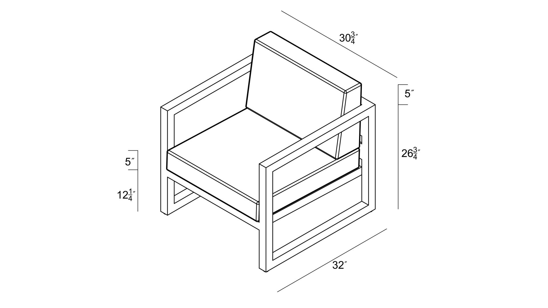 - Club Chair: 30.75″W x 32″D x 33″H (34lbs.)
