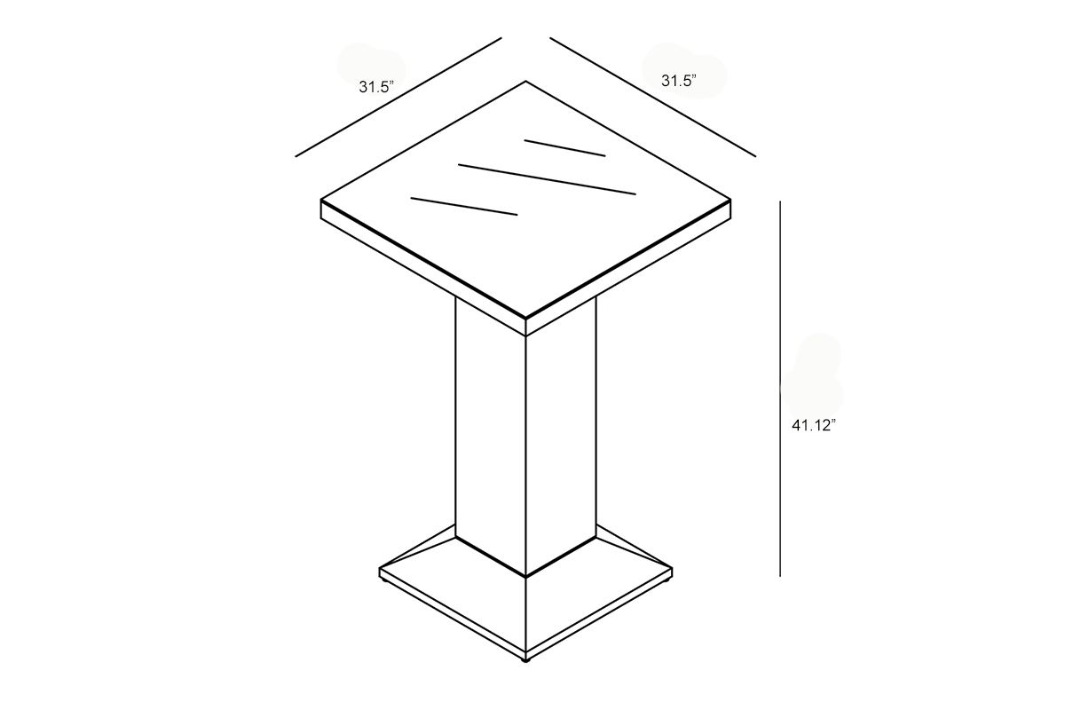 - Bar Table: 31.5″W x 31.5″D x 42.75″H (60lbs.)