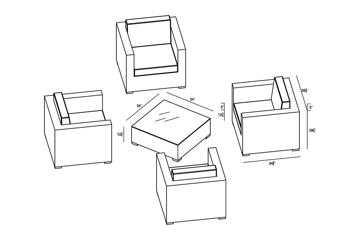 Harmonia Living District 5 Piece 4-Seat Club Chair Set HL-DIS-TS-5CC4