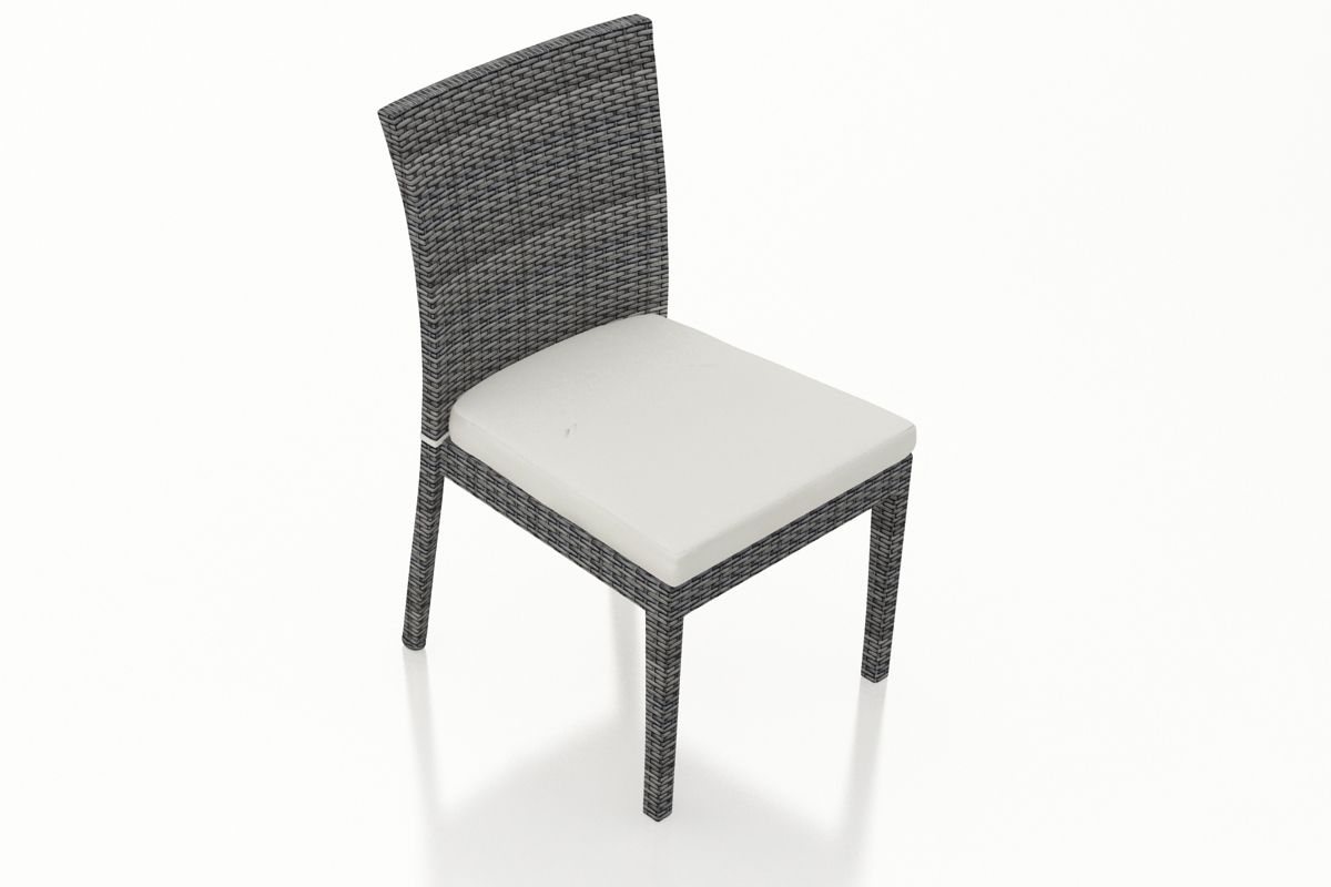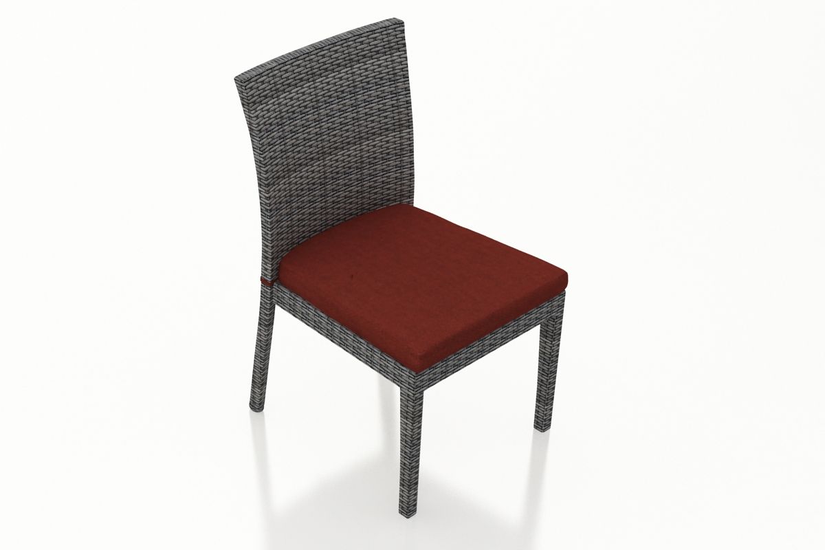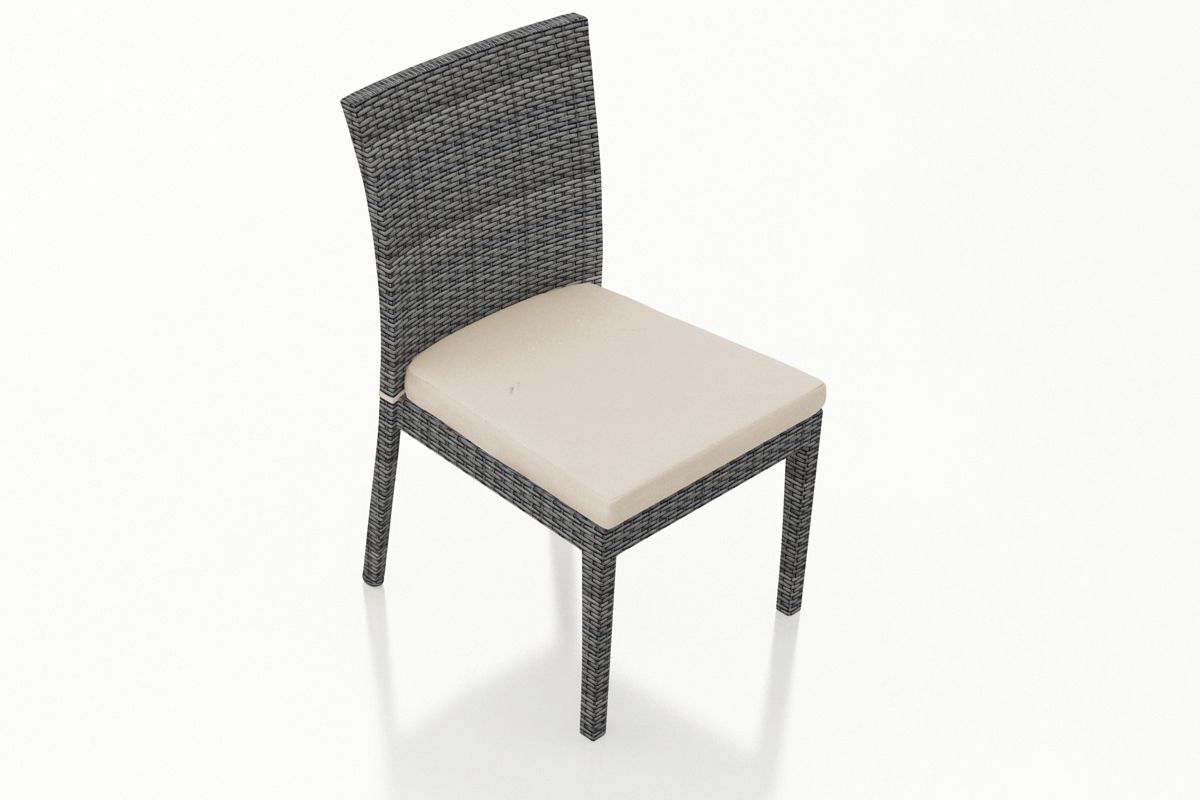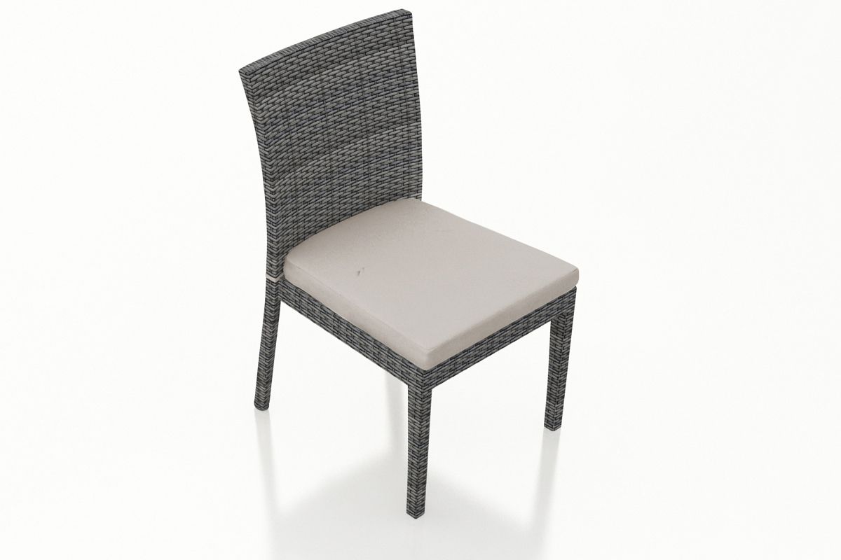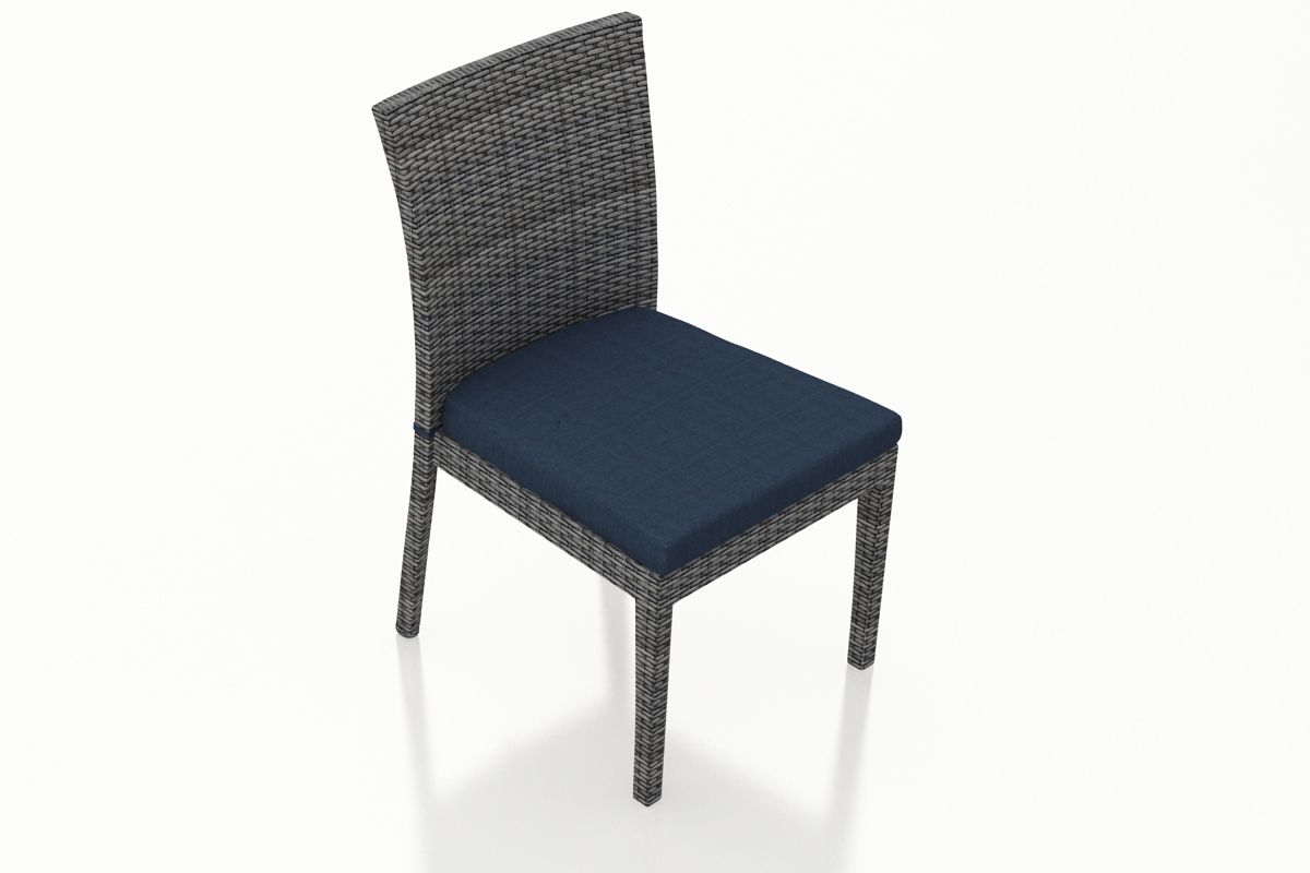 The District Dining Side Chair by Harmonia Living features a clean, simple build that will add modern style to your outdoor dining experience. This piece’s flat, woven design and weathered look give it a unique visual appeal, while sturdy, all-weather construction ensures lasting performance across the seasons. The wicker is made with durable High-Density Polyethylene (HDPE) and finished in a beautiful Textured Slate color, which gives it a natural feel. Its sturdy aluminum frame, double reinforced seat and fade resistant cushion are made to endure in any outdoor setting, rain or shine.