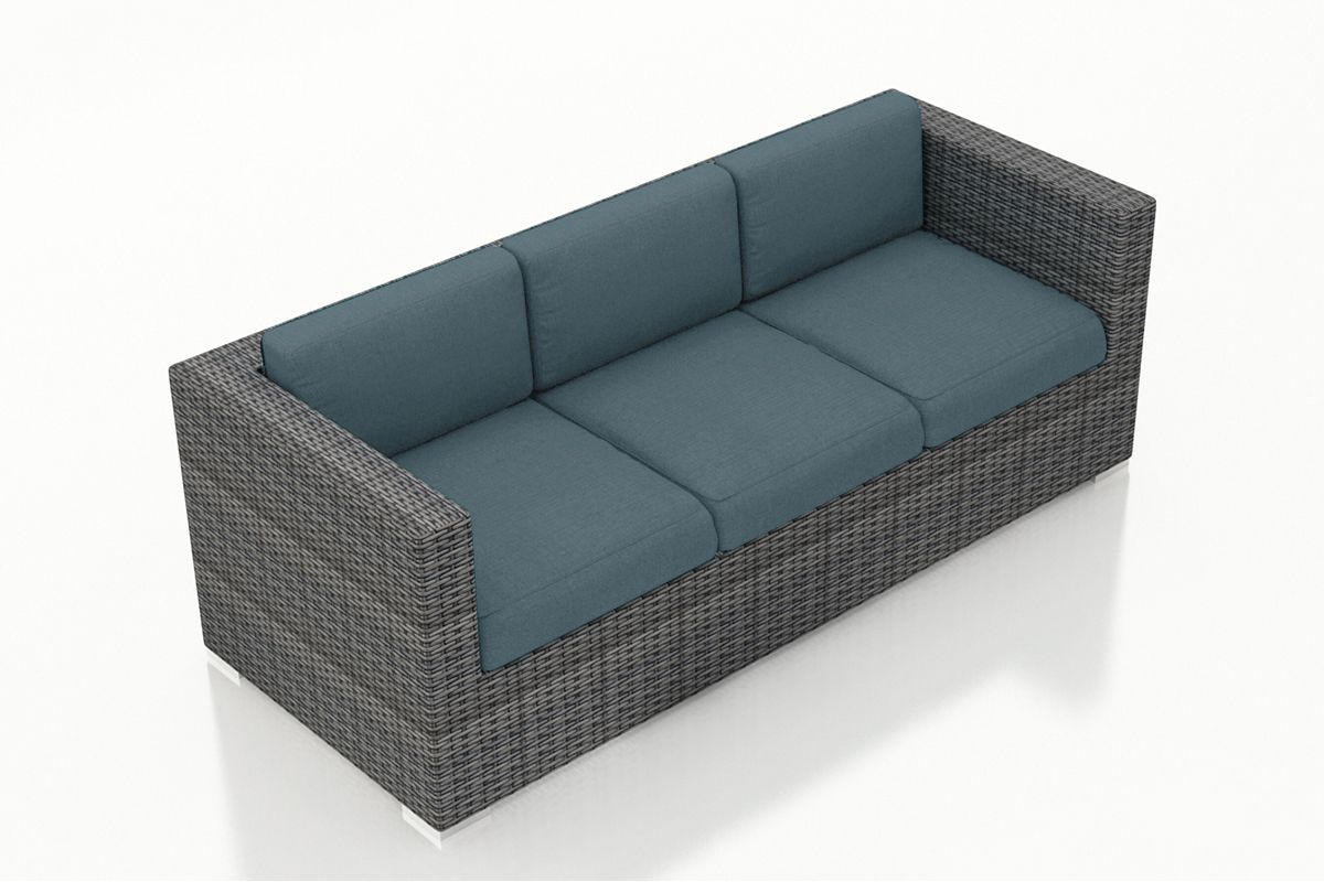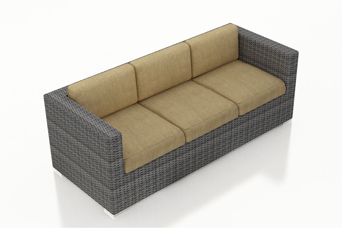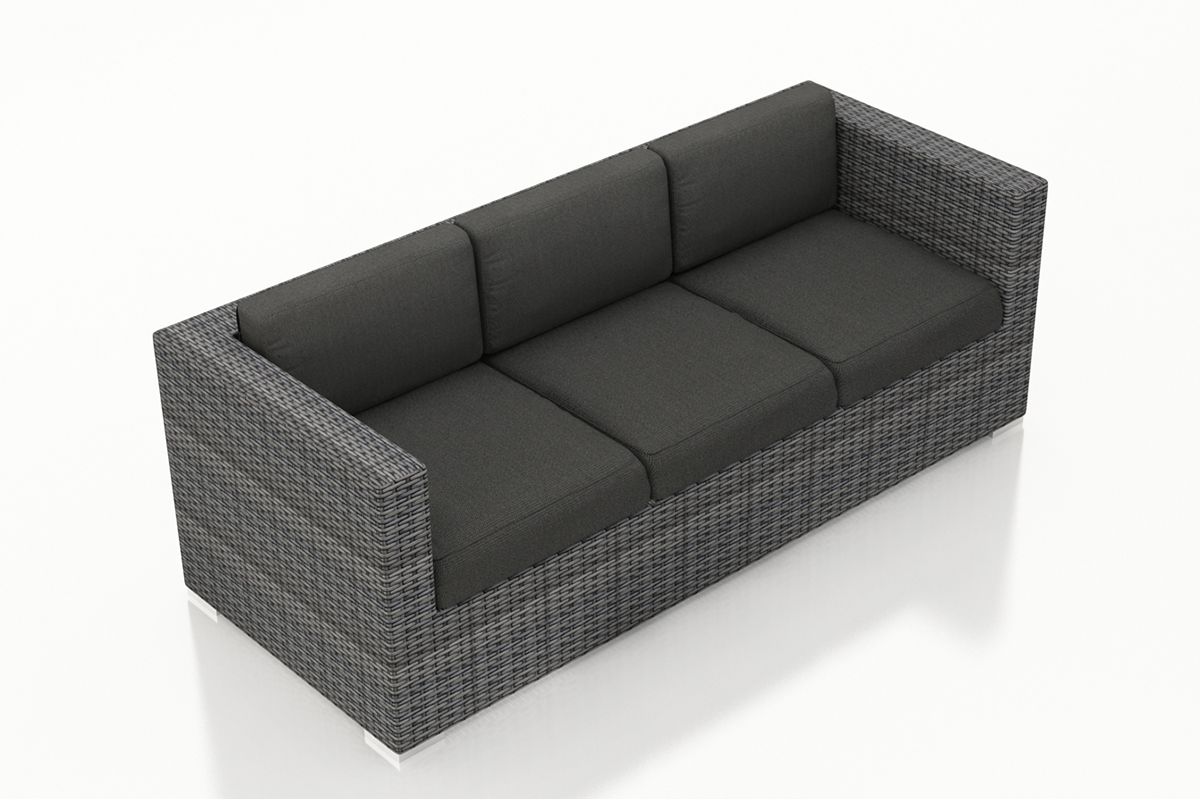 Kick back and relax with the District Sofa by Harmonia Living. This collection’s high arms, flat, woven design and weathered look give it a unique visual appeal, while sturdy, all-weather construction ensures lasting performance across the seasons. The wicker is made with durable High-Density Polyethylene (HDPE) and finished in a beautiful Textured Slate color, which gives it a natural feel. Its sturdy aluminum frame, triple reinforced seat and fade resistant cushions are made to endure in any outdoor setting, rain or shine. If you wish to order this piece through Harmonia Living’s Quick Ship program, make sure to select a Quick Ship (QS) fabric before checkout! All cushions are made in the USA from Sunbrella, Outdura, and Revolution performance fabrics which carry a 5 year fade warranty.