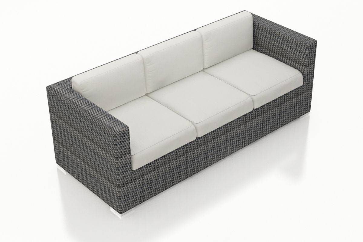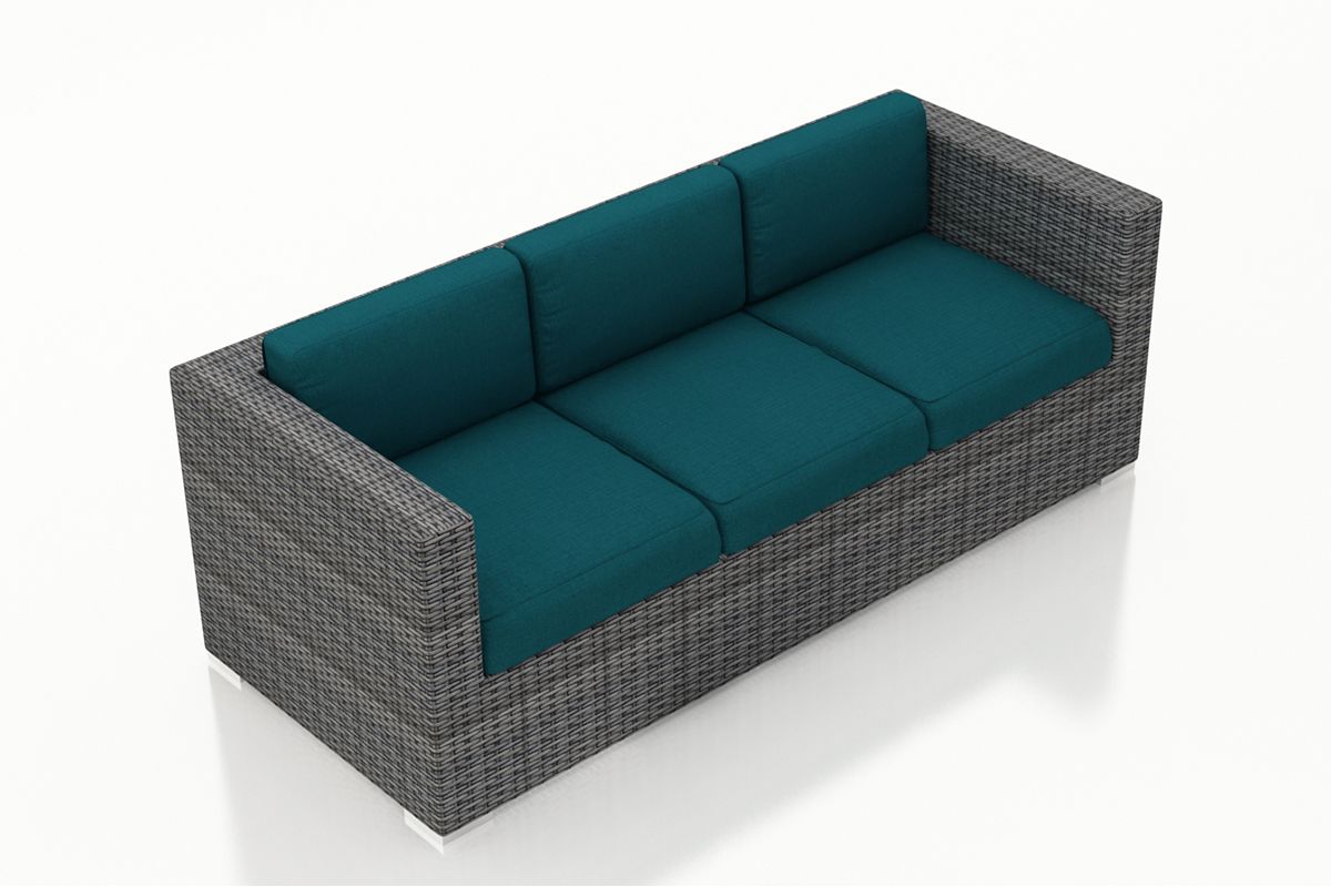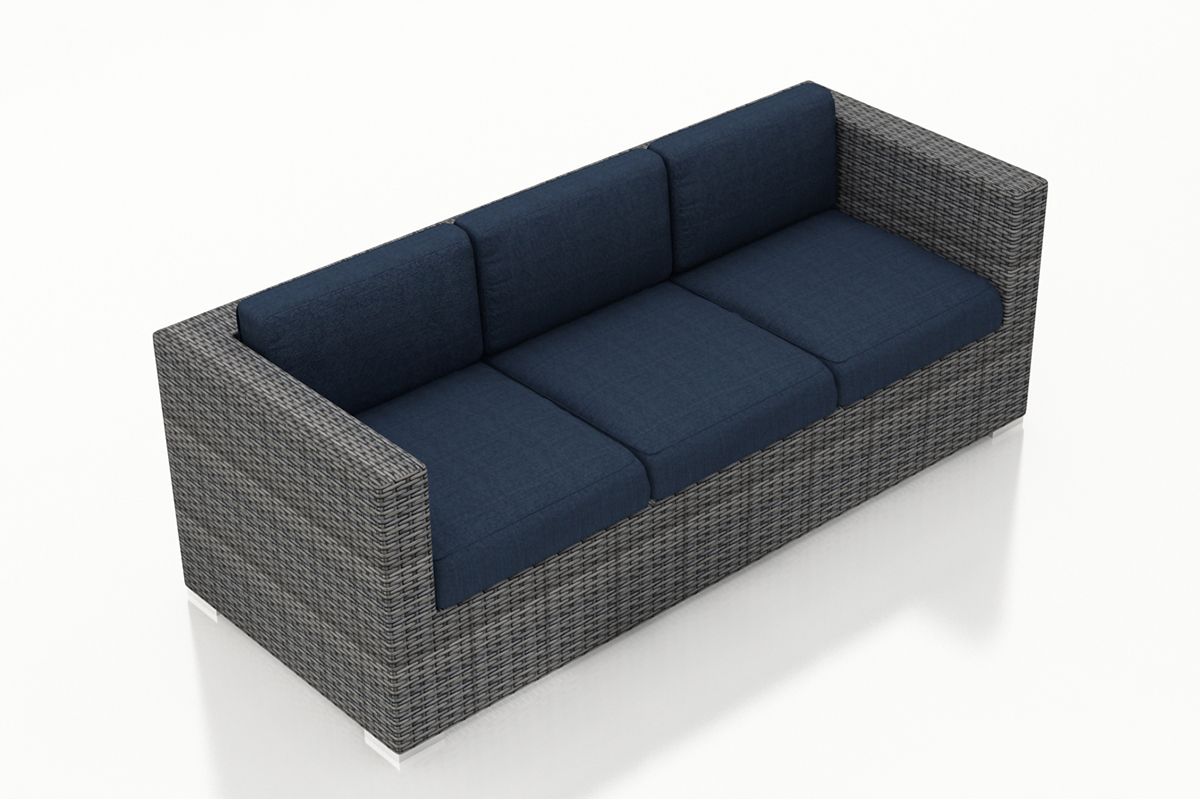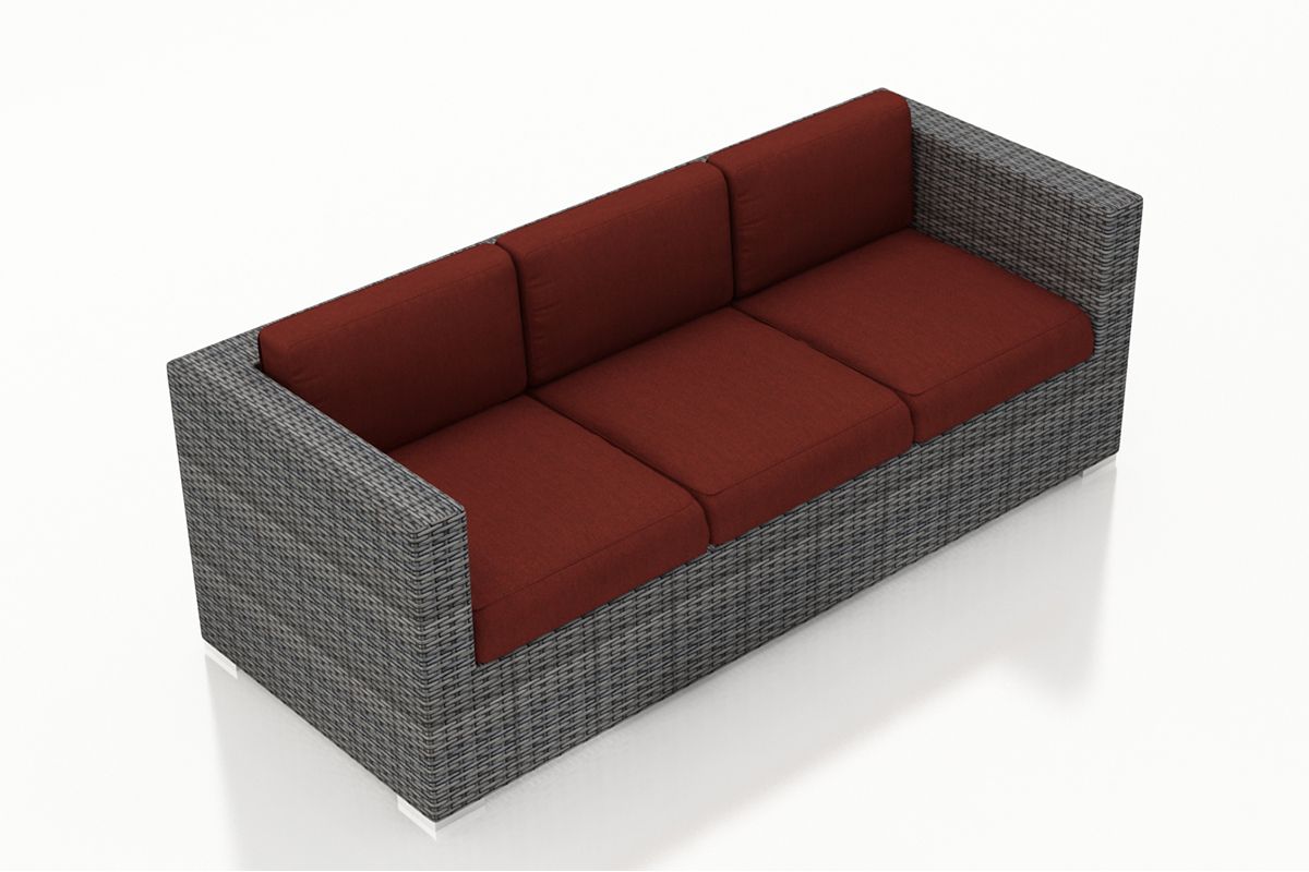 Kick back and relax with the District Sofa by Harmonia Living. This collection’s high arms, flat, woven design and weathered look give it a unique visual appeal, while sturdy, all-weather construction ensures lasting performance across the seasons. The wicker is made with durable High-Density Polyethylene (HDPE) and finished in a beautiful Textured Slate color, which gives it a natural feel. Its sturdy aluminum frame, triple reinforced seat and fade resistant cushions are made to endure in any outdoor setting, rain or shine. If you wish to order this piece through Harmonia Living’s Quick Ship program, make sure to select a Quick Ship (QS) fabric before checkout! All cushions are made in the USA from Sunbrella, Outdura, and Revolution performance fabrics which carry a 5 year fade warranty.