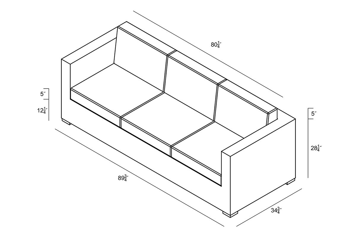 - District Sofa: 89.75″L x 34.75″W x 32.25″H (61 lbs.)