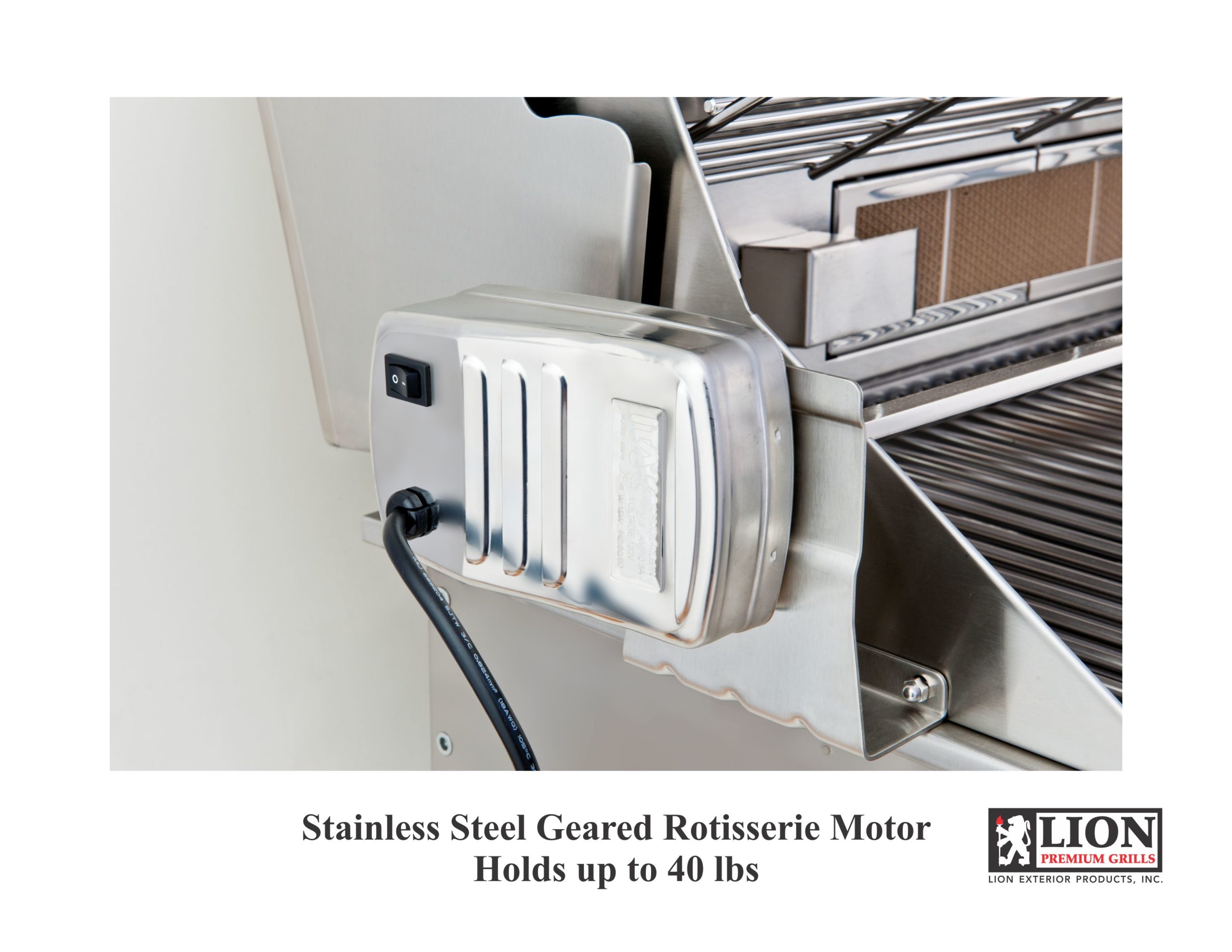 💪 Powerful Performance: 60,000 BTUs from four cast stainless steel burners, plus a 15,000 BTU infrared rotisserie burner for maximum versatility.