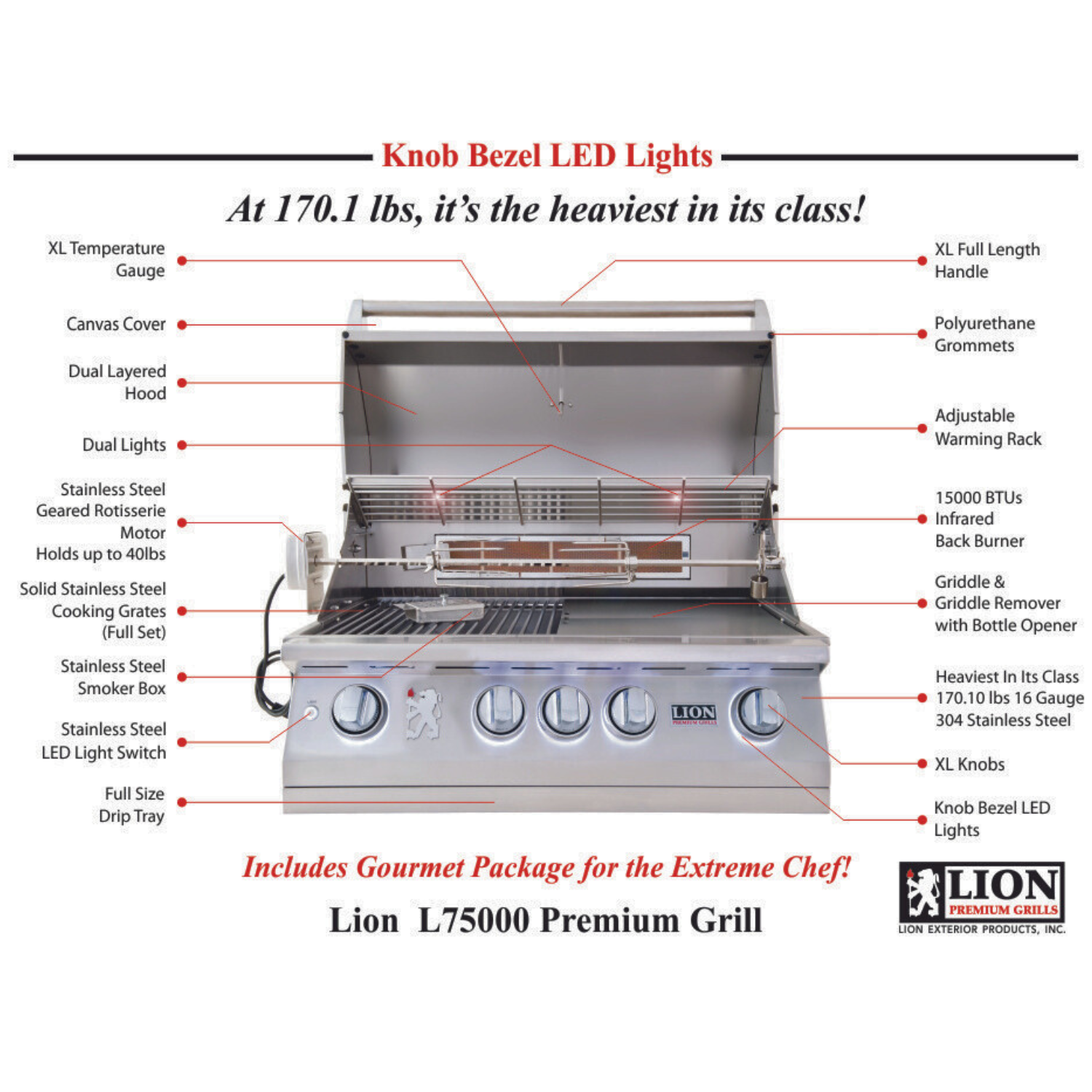 The Lion L75000 goes above and beyond with its included gourmet package, providing all the tools needed to take your outdoor cooking to the next level. This package includes: