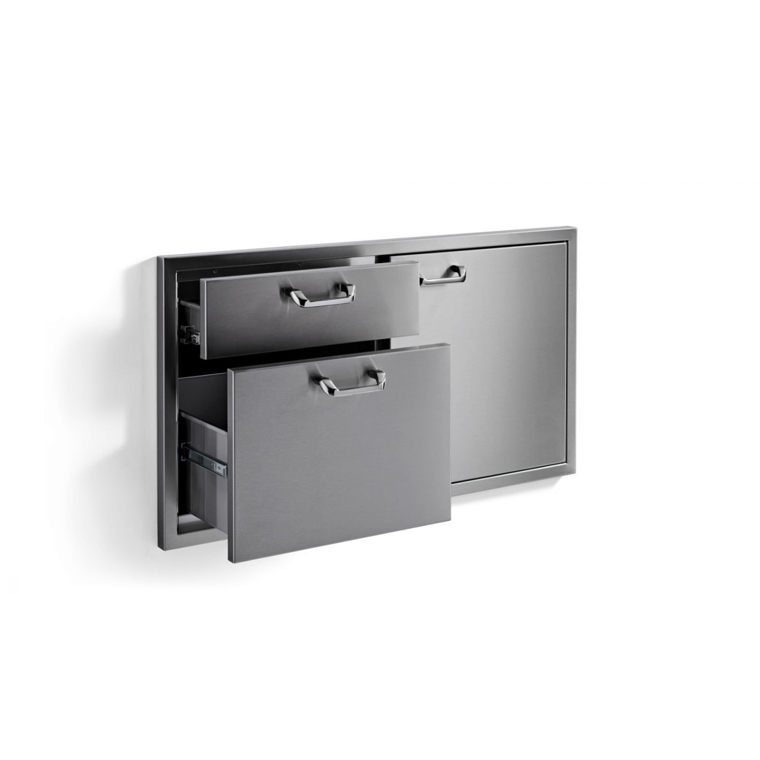 This wide-format combo integrates effortlessly into expansive outdoor kitchen layouts, providing symmetry alongside large grills, refrigerators, or sink stations. Its flush-mount form and classic stainless finish offer timeless style that complements any premium island design.