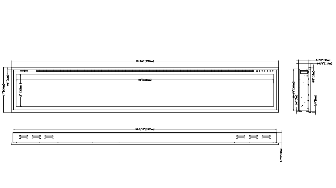 Overall Dimensions: 99.75″ W × 17″ H × 4.75″ D