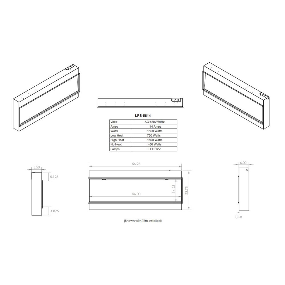 The Modern Flames 56-Inch Landscape Pro Slim Electric Fireplace is the perfect solution for anyone seeking a clean, frameless look in a slim-profile design. Built to fit a standard 2” x 6” wall construction, the Slim model provides an edge-to-edge viewing area with independently controlled flames, ember bed, and downlighting. Ideal for both indoor living rooms and covered outdoor patios, this fireplace blends modern aesthetics, customizable flame technology, and supplemental heat to create the ultimate gathering space.