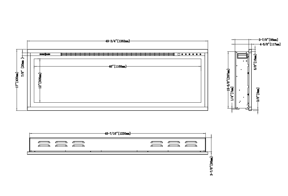 Overall Dimensions: 50″ W × 19 7/8″ H × 6″ D