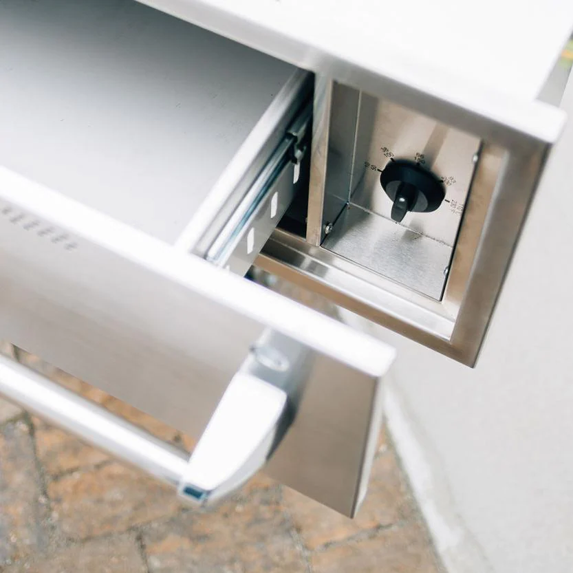 Bring efficiency and function to your outdoor kitchen with the 36 x 11 1/2 Summerset Warming Drawer. Use your warming drawer to keep your food warm or even keep pool towels warm for those chilly nights. Constructed of high-quality #304 stainless steel, the Summerset Warming Drawer is fully enclosed, allowing temperature ranges between 230 degrees, and sealed for maximum protection from the outdoors. The Summerset Warming Drawer features stainless steel mounting tabs, smooth gliding and soft closing on heavy-duty tracks, and a Gold Standard Lifetime Warranty.