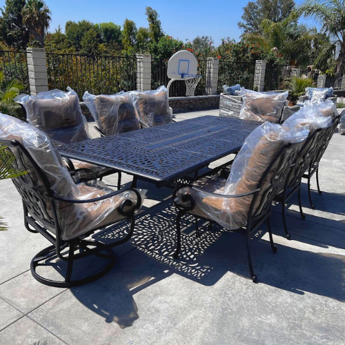 Redefine your outdoor dining experience with the luxurious and versatile Santa Anita 11-Piece Outdoor Dining Set. Designed for both style and practicality, this set offers everything you need for entertaining—from intimate family meals to large backyard gatherings. Crafted with premium materials, this set guarantees long-lasting comfort, elegance, and ease of use.