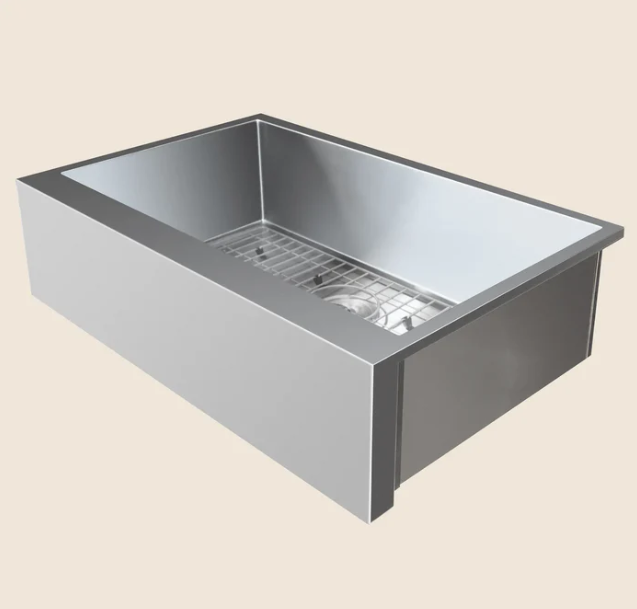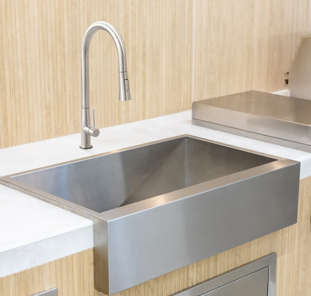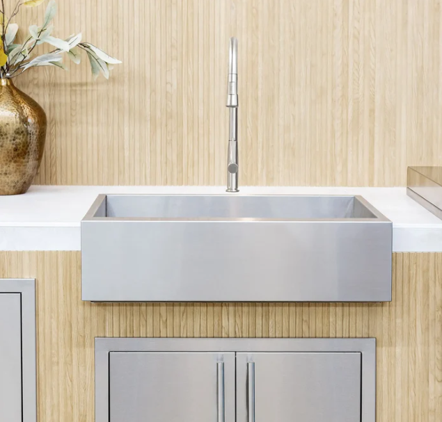 Looking for a sleek and modern take on the classic farmhouse sink for your outdoor kitchen? Look no further than our 32″ Outdoor Rated Farmhouse Sink! This sink’s single basin and tightly angled corners make it ideal for maximizing counter space. The ultra-flat rim makes it simple to deposit things into the sink straight from the counter, while various installation choices give you total control over your outdoor kitchen’s appearance. Plus, the deep 8″ basin depth and sloped bottom ensure smooth drainage. The #304 stainless steel construction is built to last, making this sink a great addition to any outdoor kitchen. The faucet is not included.