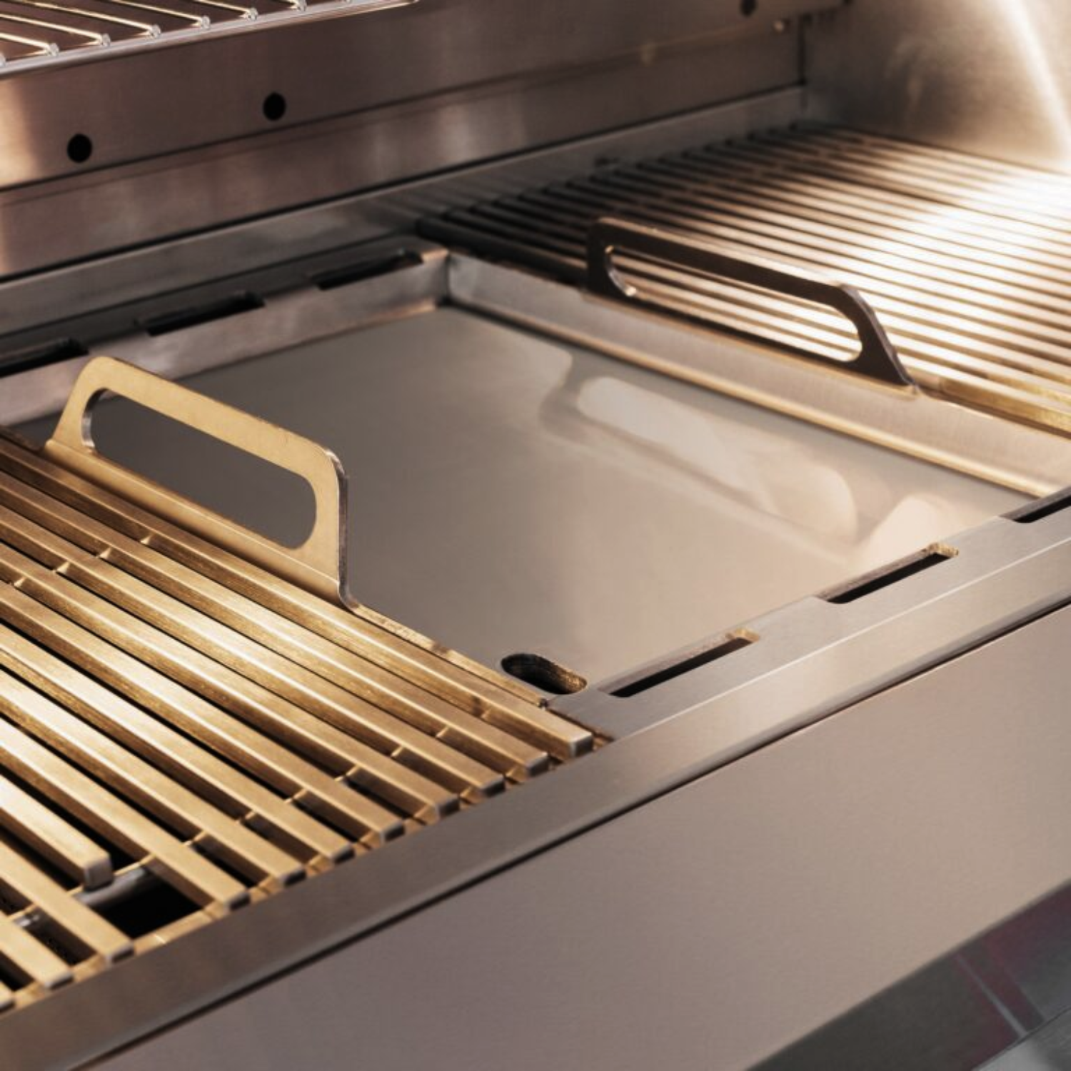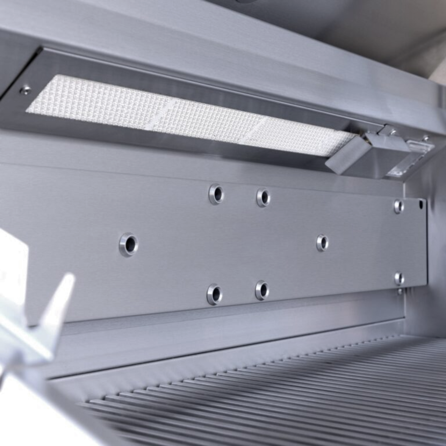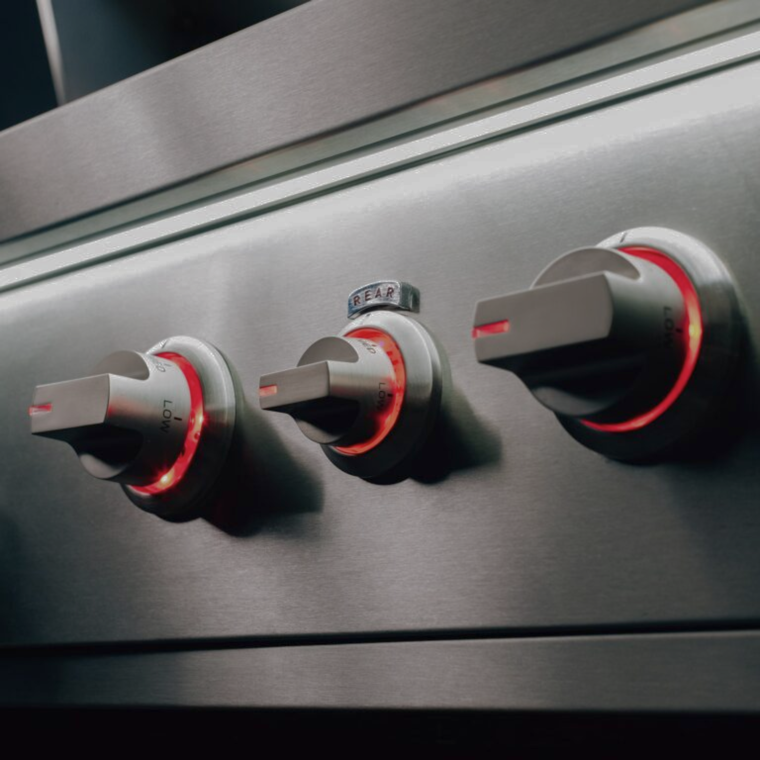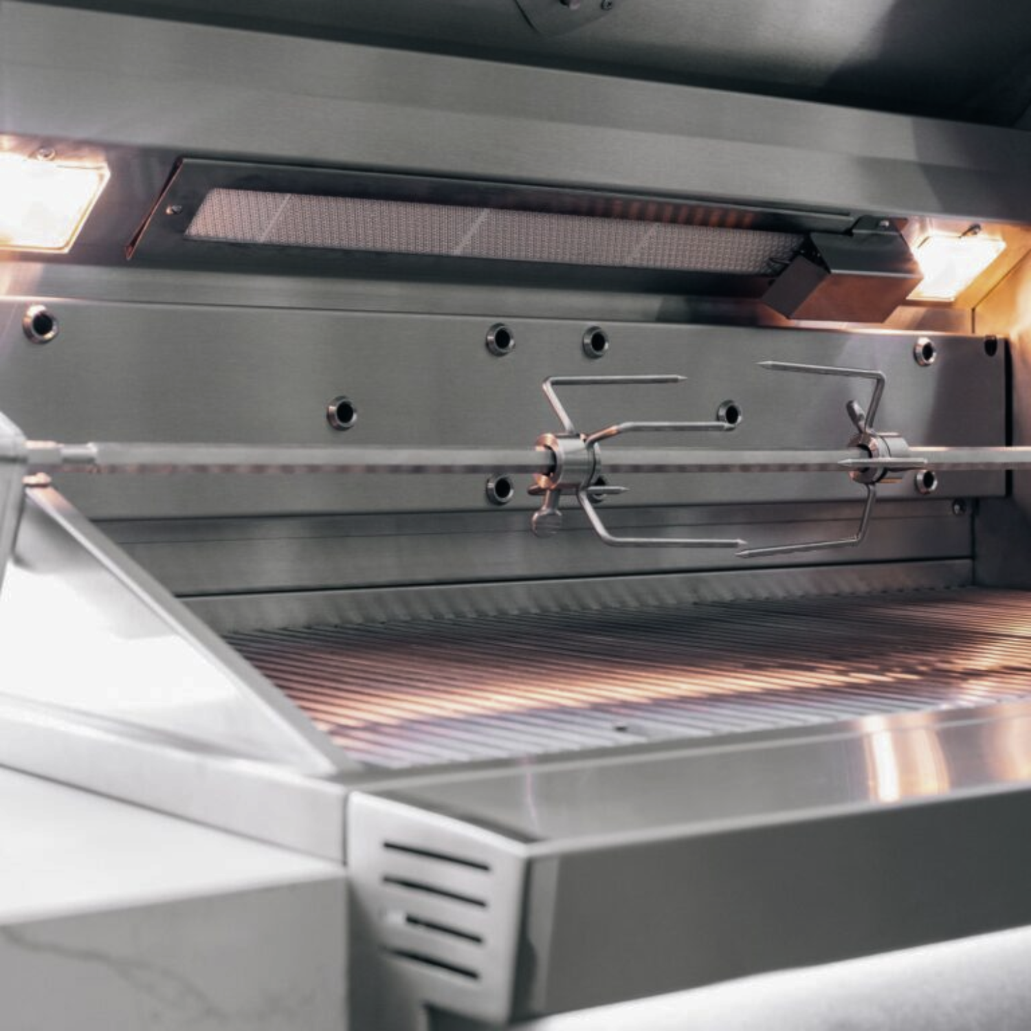 The TRL Pro ensures perfection in any setting. LED bezel lighting shifts from white to red, providing a clear visual cue when burners are active, while interior halogen lights illuminate the cooking surface for total visibility. Every feature is designed for seamless operation, from effortless rotisserie cooking to the easy-clean briquette system. The TRL Pro is a gateway to unforgettable evenings where every meal is an experience.