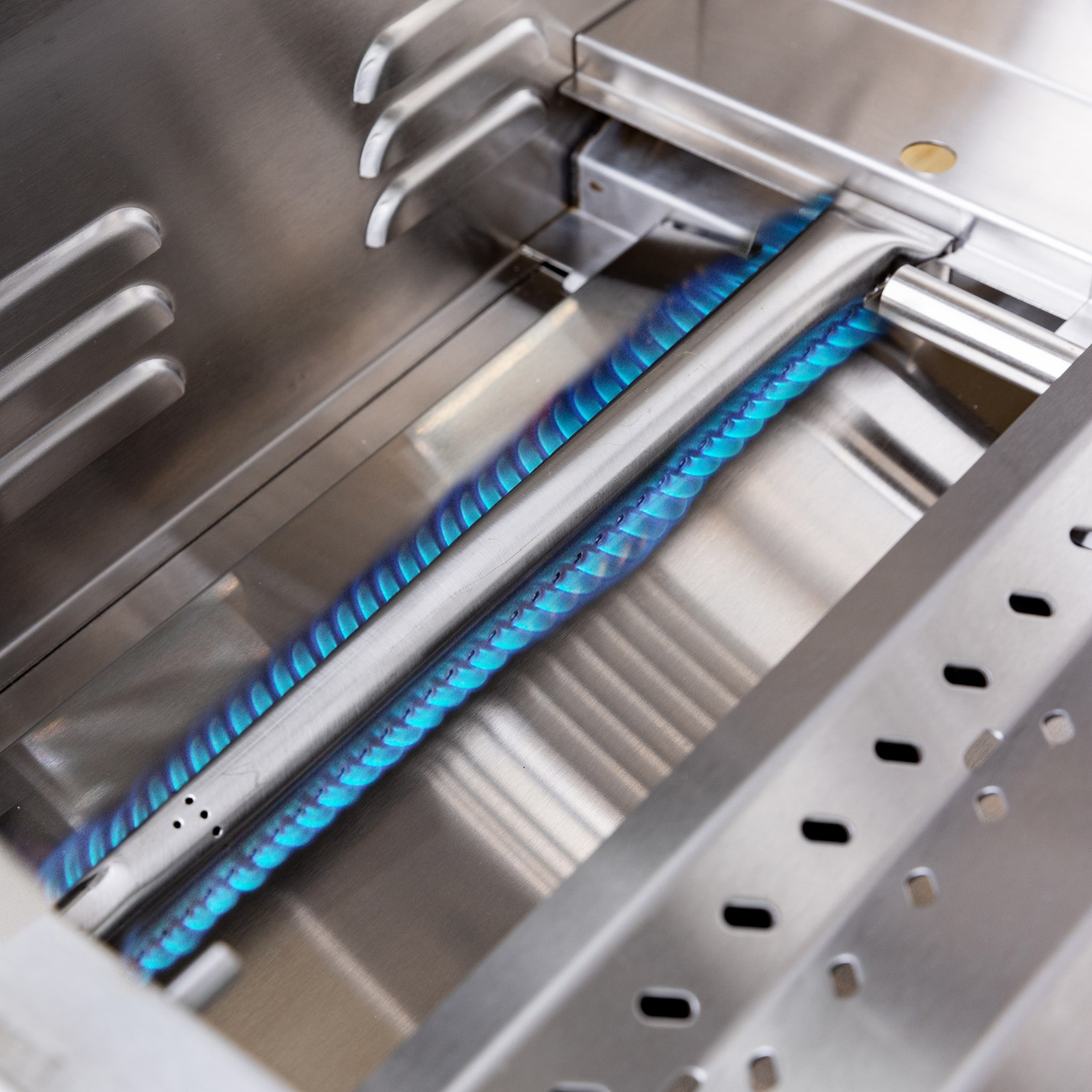 Stainless flame tamers sit inches above each burner, instantly vaporizing drippings to circulate savory smoke. Heavy 8 mm grates store extra thermal mass, branding proteins with deep, uniform sear marks while resisting warp and rust.