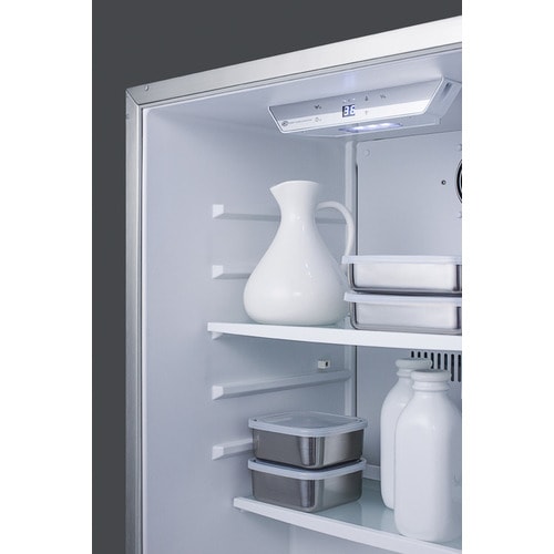 Summit Classic Collection features deluxe undercounter appliances designed to bring modern luxury into the home. Specially designed for weatherproof use and user convenience, the CL68ROS is the ideal refrigerator for outdoor kitchens. The cabinet and seamless door are fully wrapped in 304 grade stainless steel to stand up to the elements, with a sealed back for added safety and easy cleaning. The user-reversible door includes a factory installed lock and horizontally mounted stainless steel handle with a 16mm diameter, perfect for matching many popular styles of cabinetry. A designer kickplate completes the look. The front-breathing design allows built-in installation under counters, while the finished cabinet also allows this model to be used freestanding. We include a locking set of casters to install on the CL68ROS for mobile use. Inside, the CL68ROS offers maximum convenience with frost-free operation that eliminates the need to manually defrost the unit. Fan-forced cooling ensures the temperature stays consistent throughout the 5.6 cu.ft. interior. A white LED light automatically turns on when the door is opened, while an open door alarm sounds if the door is left ajar. This unit includes adjustable shelves in an attractive frosted glass finish and door storage that lets you keep up to two one-gallon containers conveniently in reach. The digital thermostat makes it easy to manage the temperature in Celsius or Fahrenheit. This unit is also equipped with a temperature warning alarm that alerts users if the interior has gone out of the suggested range. A conservation mode setting lets you save on energy use by disabling some of these electrical features. With advanced features, durable construction and an elegant design, the CL68ROS refrigerator lets you complete any outdoor kitchen in proper style. This unit replaces the discontinued CL65ROS.