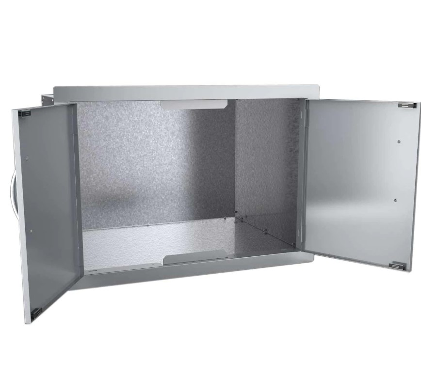 Sunstone island components provide the complete professional solution for outdoor kitchen builders at an affordable price. The doors and handle are constructed from 304 grade stainless steel and the cabinet box is made from 18 gauge galvanized steel.