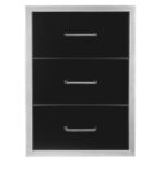 The Wildfire 19 X 26 vertical black stainless steel triple access drawer embodies the essence of premium outdoor kitchen storage. Being a proud part of the Ranch collection, it guarantees both unmatched quality and design. Carefully designed for a cut-out width of 17 1/4″, height of 24 1/2″, and depth of 20 5/8″, it promises an immaculate fit and easy installation. The raised mounting facilitates a slightly elevated look, and with three spacious drawers, your storage needs are sorted.