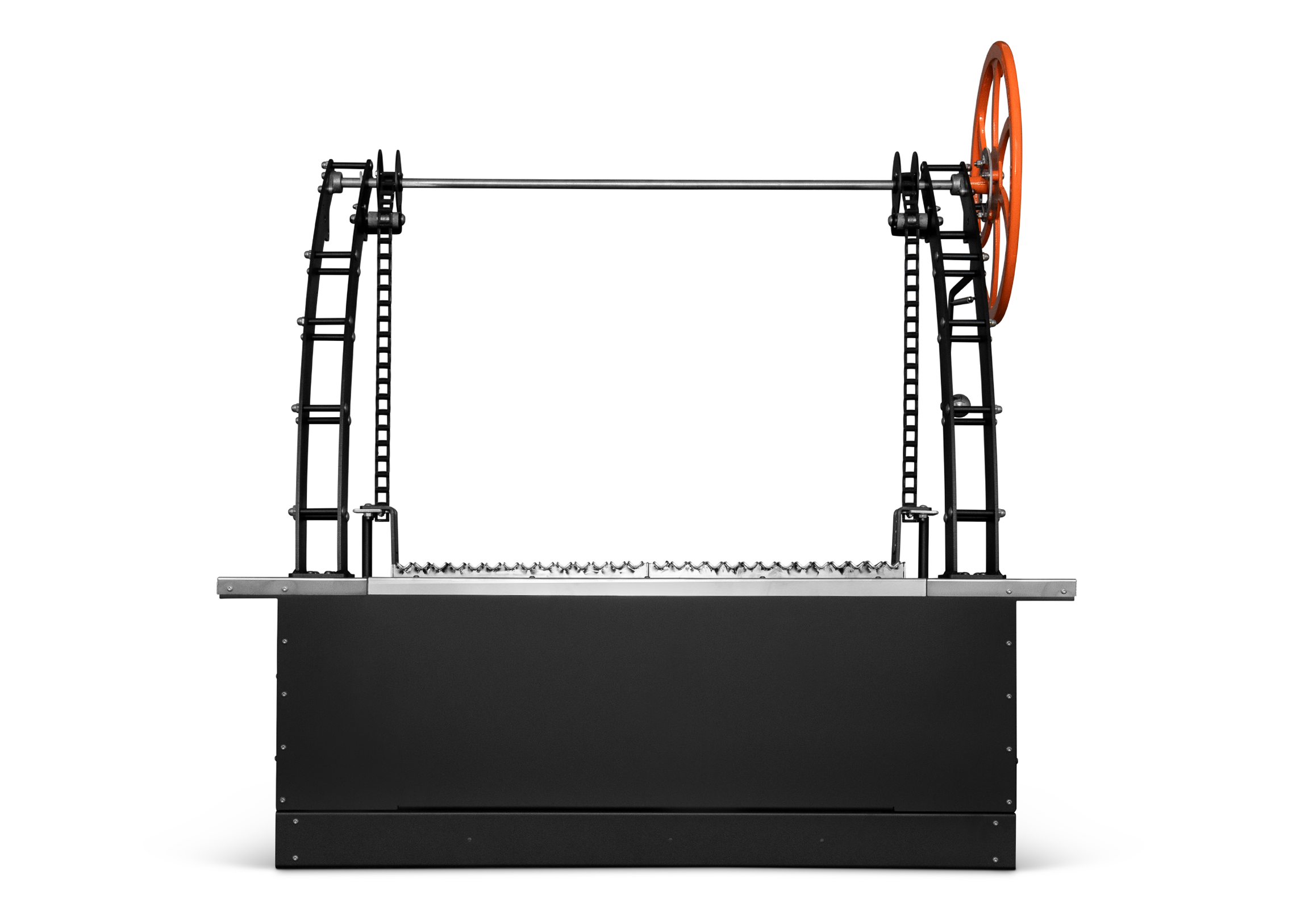 🔗 Chain-lifted grates with sealed bearings for smooth operation