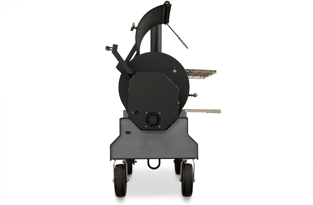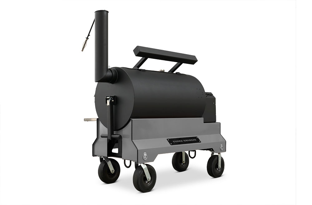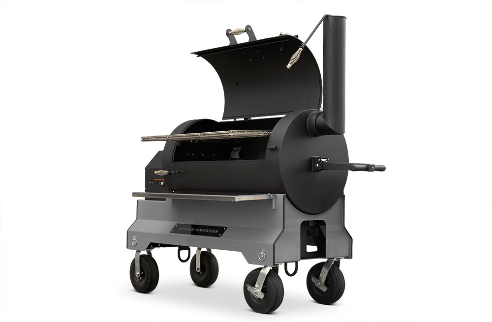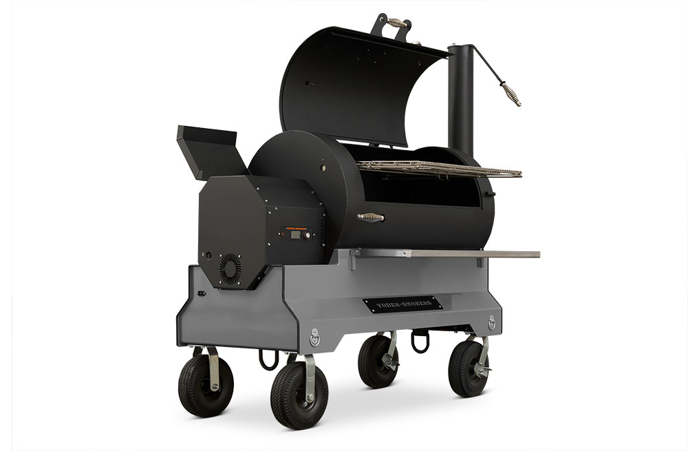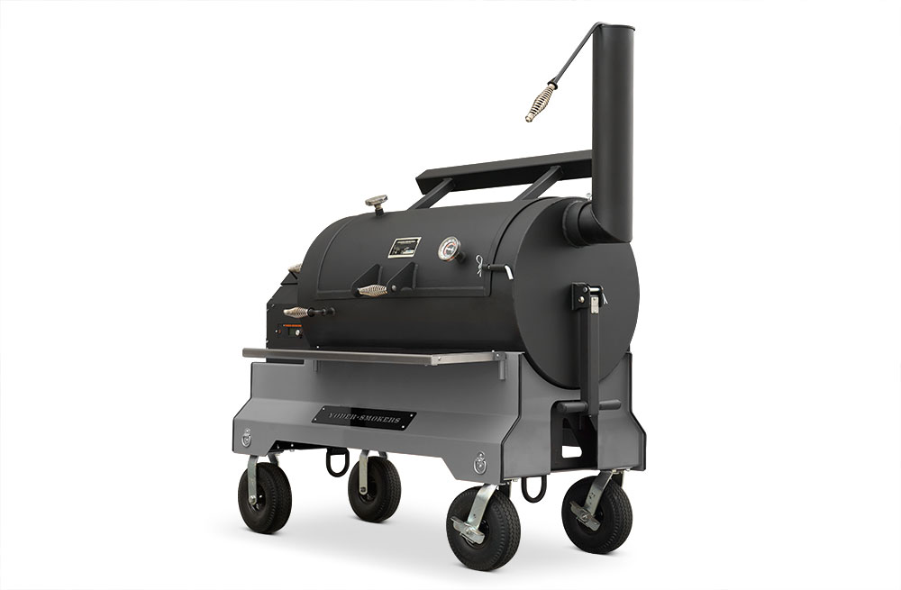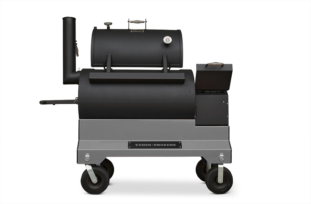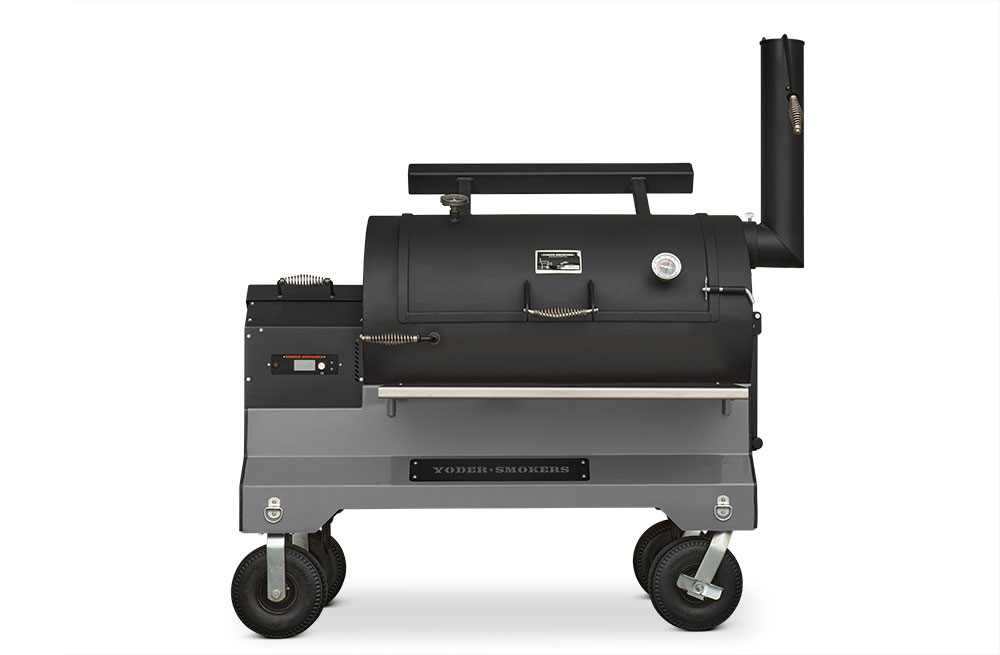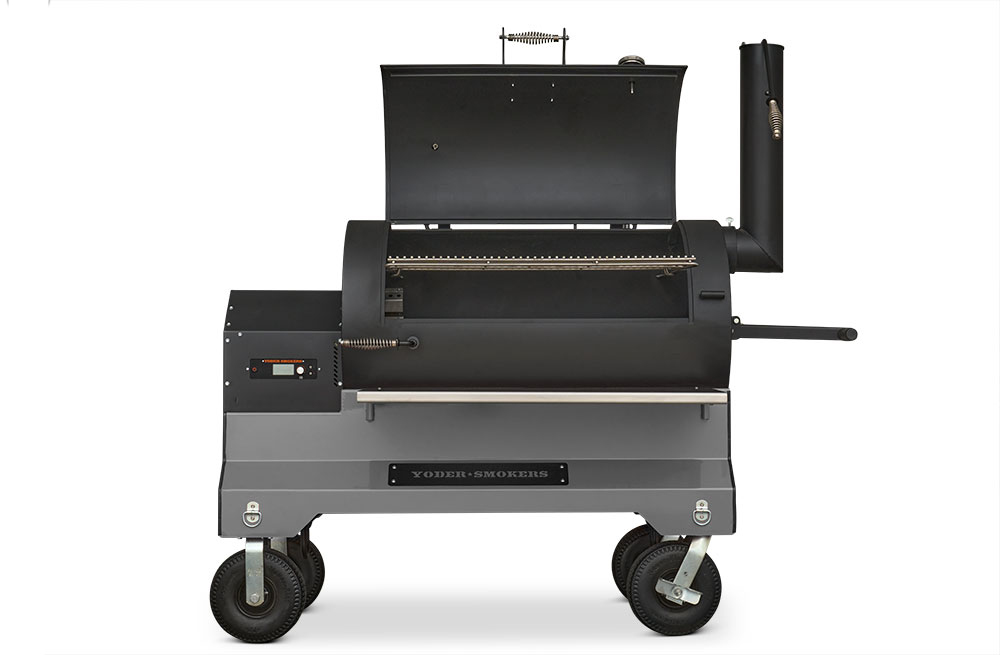 Our customers asked for it, and here it is. The Yoder Smokers YS1500S Pellet Grill redefines versatility. We’ve incorporated the Yoder Smokers ACS Adaptive Control System with our patented Heat Management System found in our offset wood pits. The Heat Management System gives the pitmaster outstanding temperature control from one side of the grill to the other, making it easy to grill a bunch of steaks, fill it full of butts and briskets or cook an entire competition on it. Mounted on our competition cart with 10″ flat-free-tires you have exceptional style and unmatched mobility from your trailer to the cooking position. That’s Yoder listening to your requests and delivering.