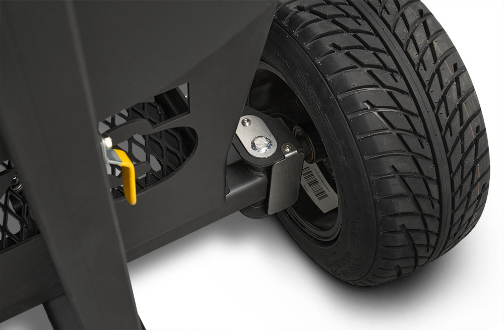 - 🛞 10″ alloy wheels with 8″ wide pneumatic tires for all-terrain mobility